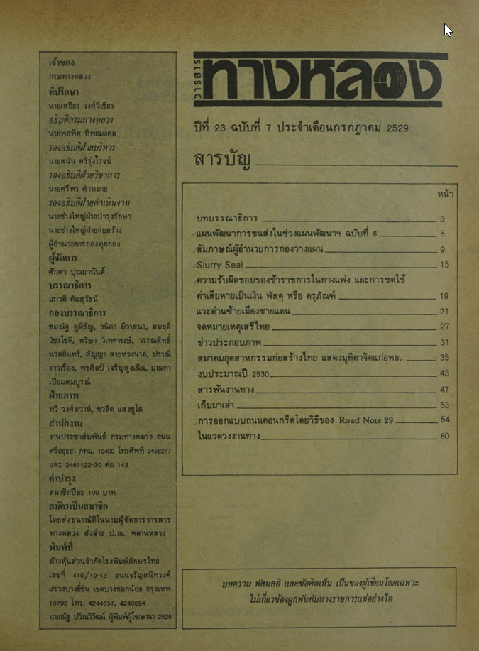 วารสารทางหลวง ปีที่ 23 ฉบับที่ 7 เดือนกรกฎาคม 2529