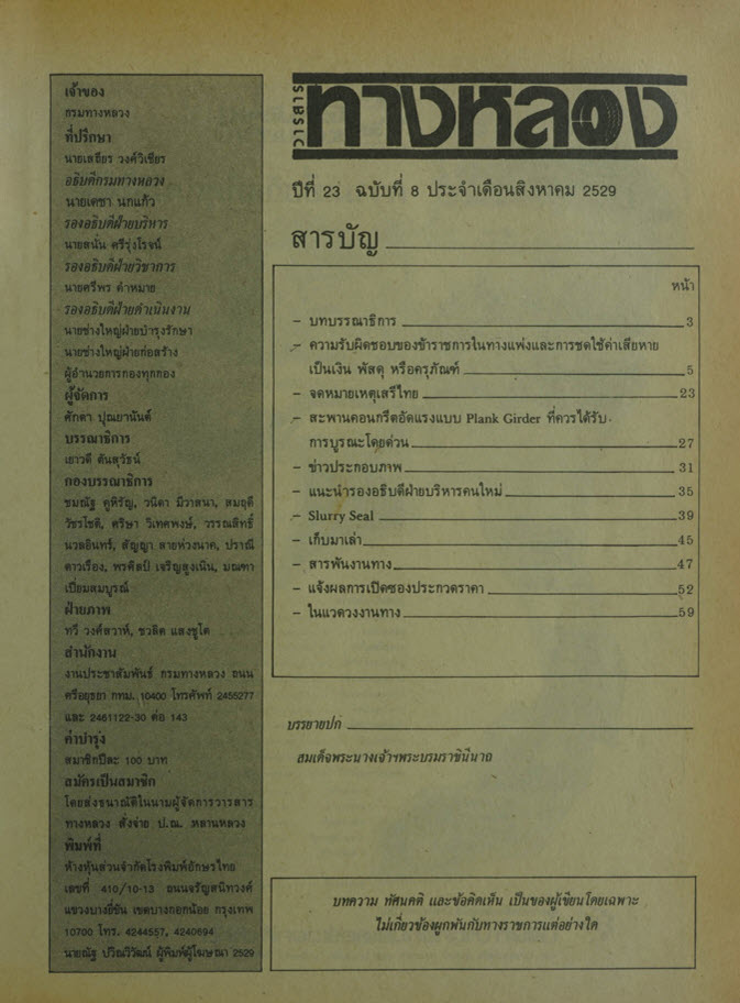 วารสารทางหลวง ปีที่ 23 ฉบับที่ 8 เดือนสิงหาคม 2529