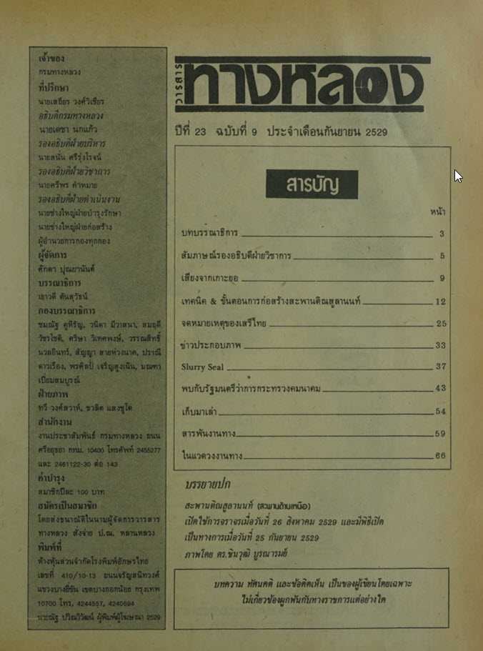 วารสารทางหลวง ปีที่ 23 ฉบับที่ 9 เดือนกันยายน 2529
