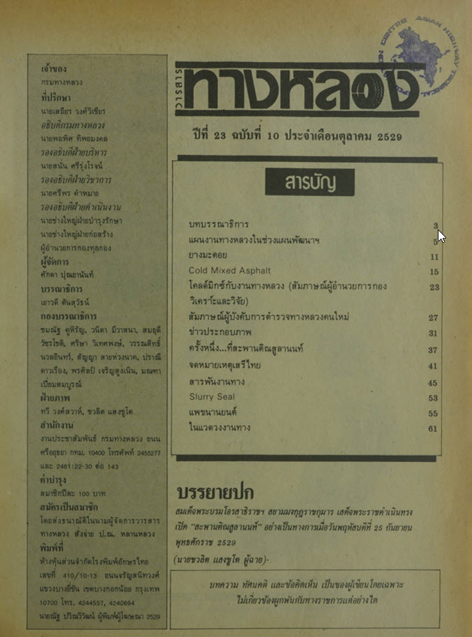 วารสารทางหลวง ปีที่ 23 ฉบับที่ 10 เดือนตุลาคม 2529