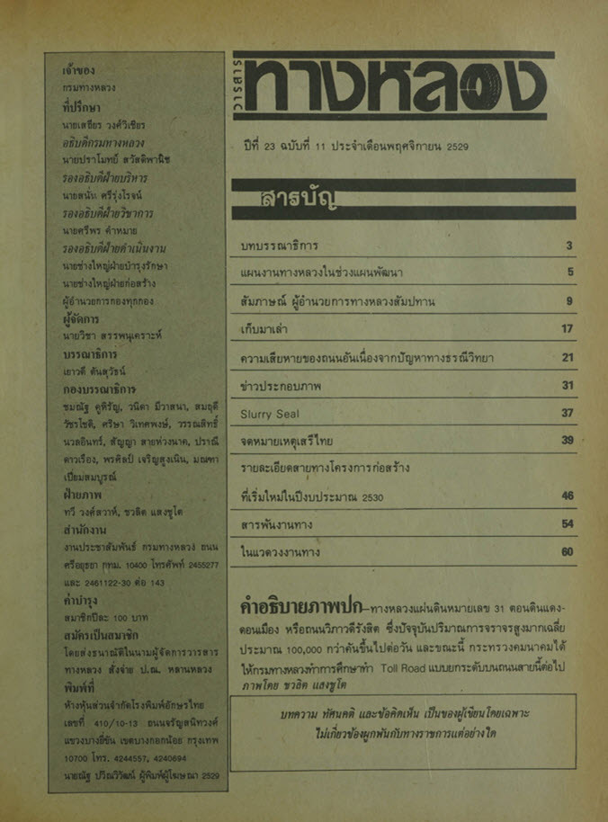 วารสารทางหลวง ปีที่ 23 ฉบับที่ 11 เดือนพฤศจิกายน 2529