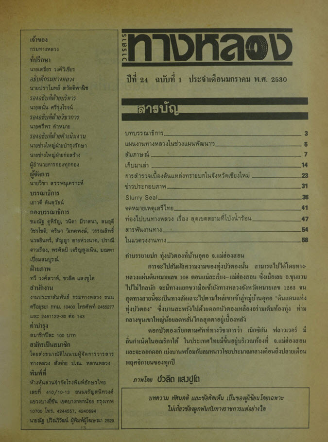 วารสารทางหลวง ปีที่ 24 ฉบับที่ 1 เดือนมกราคม 2530