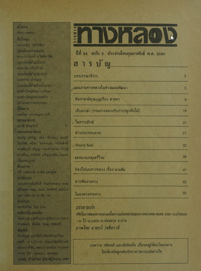 วารสารทางหลวง ปีที่ 24 ฉบับที่ 2 เดือนกุมภาพันธ์ 2530