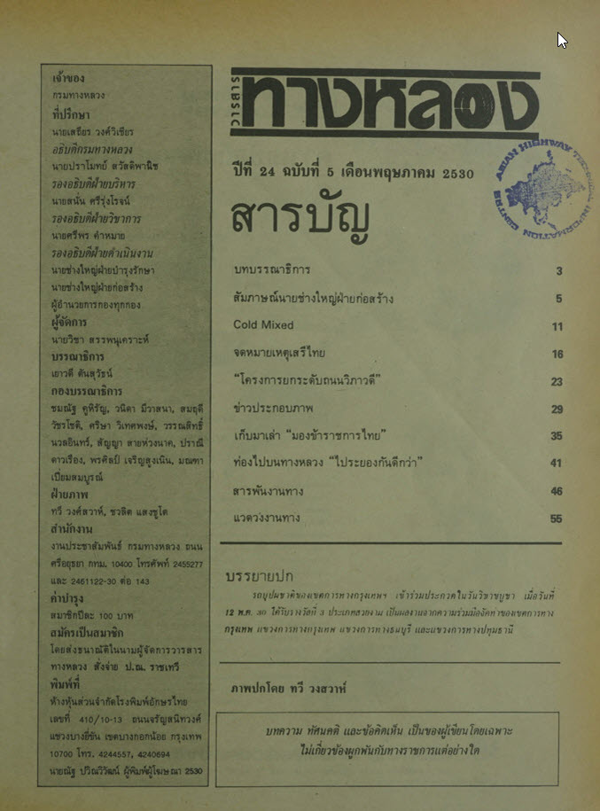 วารสารทางหลวง ปีที่ 24 ฉบับที่ 5 เดือนพฤษภาคม 2530