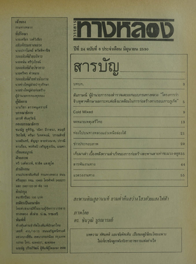 วารสารทางหลวง ปีที่ 24 ฉบับที่ 6 เดือนมิถุนายน 2530
