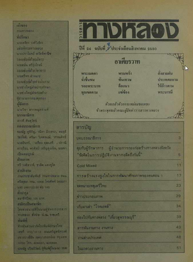 วารสารทางหลวง ปีที่ 24 ฉบับที่ 8 เดือนเสิงหาคม 2530