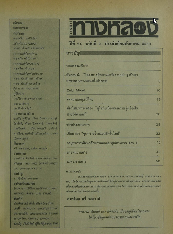 วารสารทางหลวง ปีที่ 24 ฉบับที่ 9 เดือนกันยายน 2530