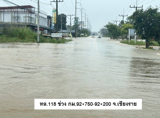 กรมทางหลวง สรุปสถานการณ์น้ำท่วมวันที่ 21 ก.ย. 67 พบว่าทางหลวงถูกน้ำท่วมในพื้นที่จังหวัดเชียงราย การจราจรผ่านไม่ได้ 2 แห่ง สอบถามเส้นทางโทร 1586