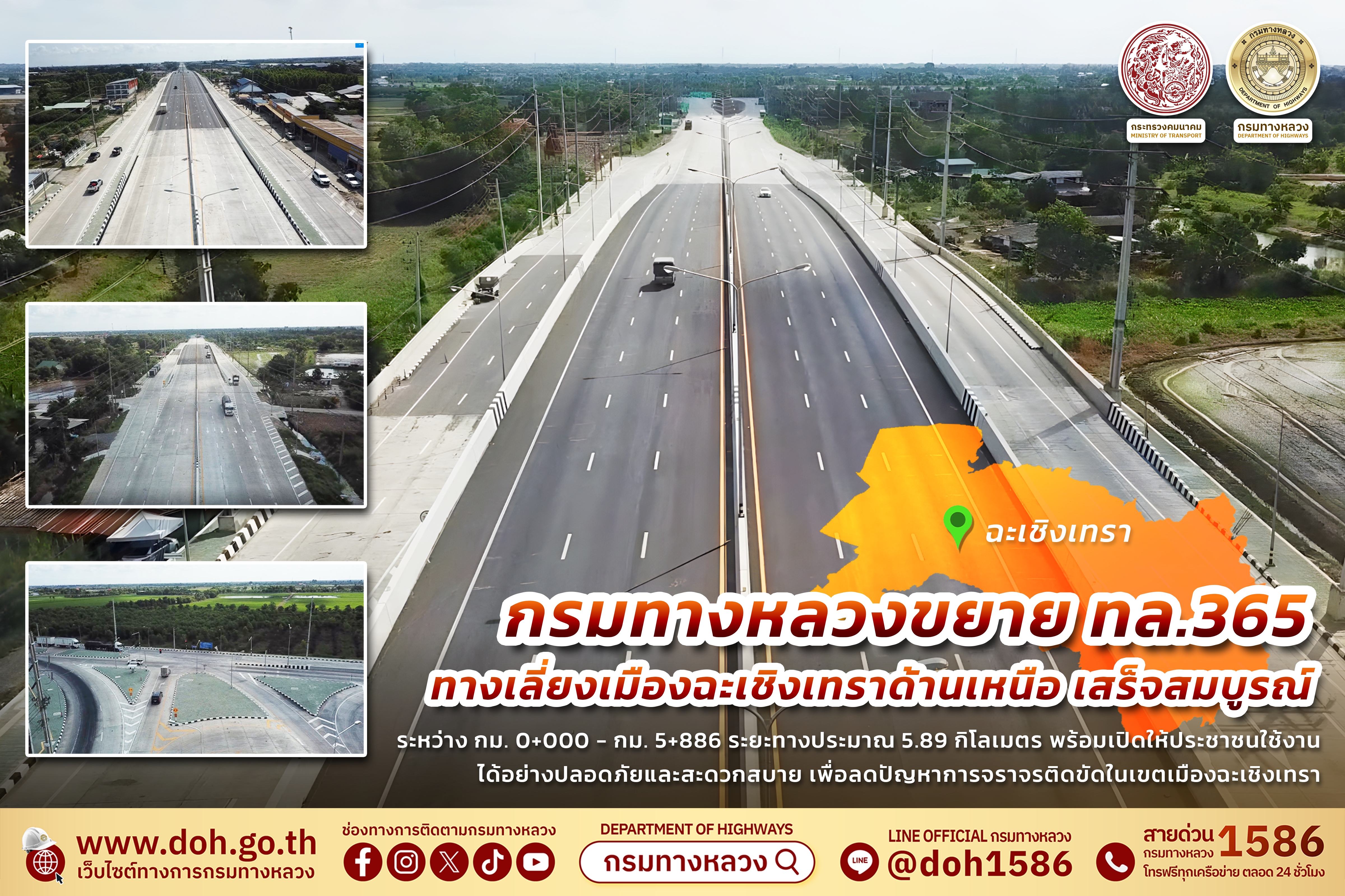 ทล.365 สายทางเลี่ยงเมืองฉะเชิงเทราด้านเหนือ เสร็จสมบูรณ์ เสริมศักยภาพการคมนาคมภาคตะวันออก