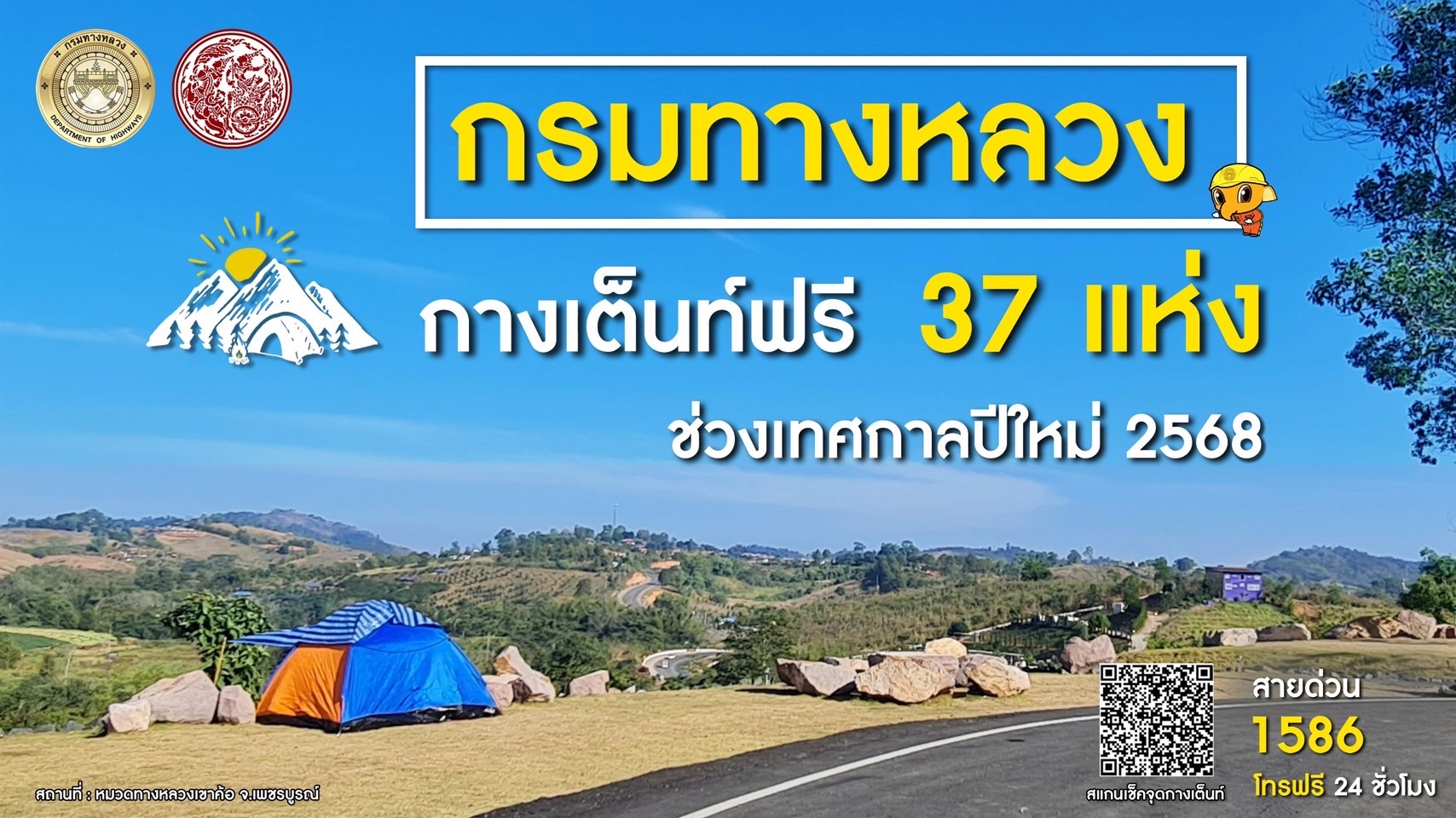 แจกพิกัด 37 จุดกางเต็นท์ฟรี! กรมทางหลวงจัดให้ รับปีใหม่ 2568