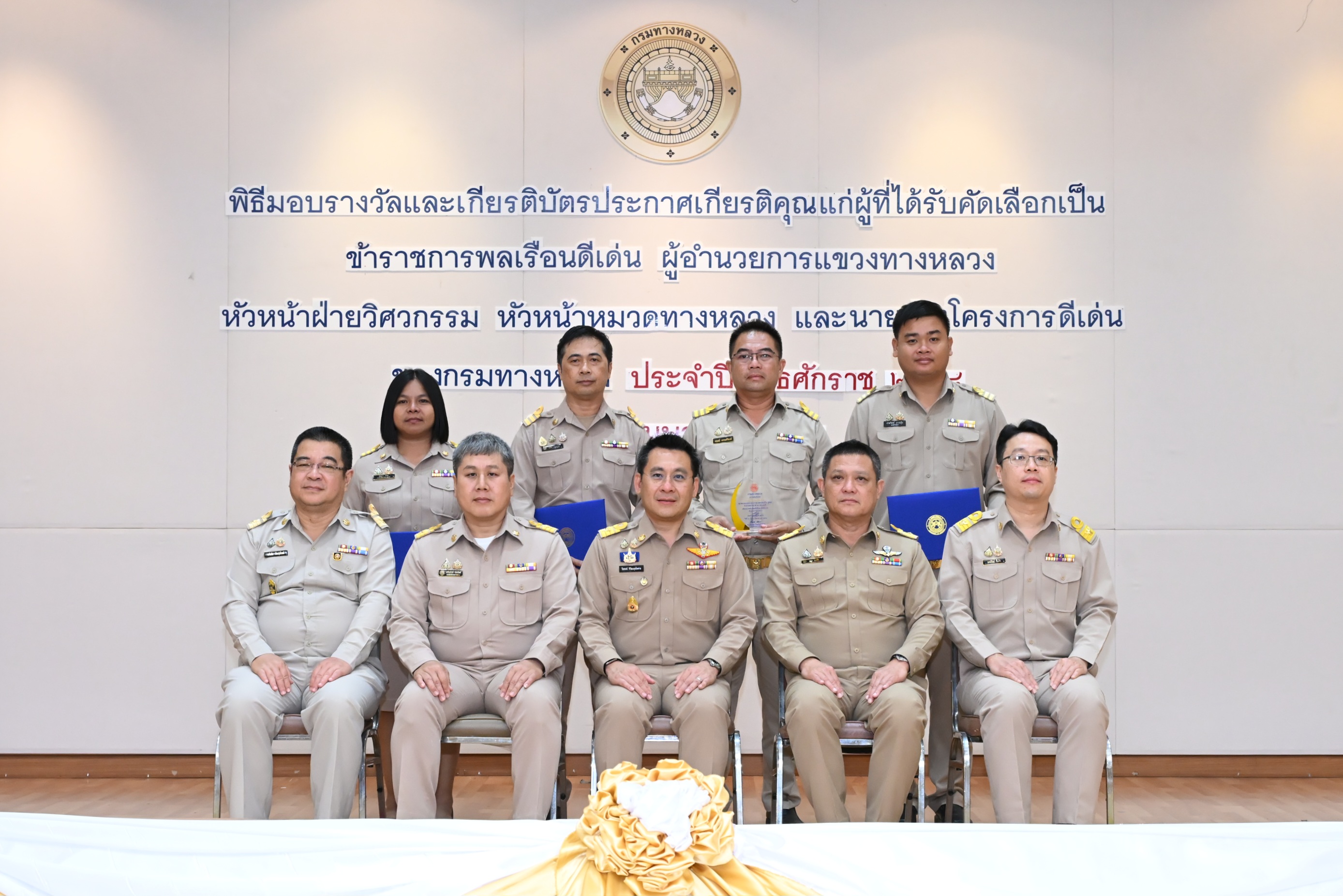 วันนี้ (1 เมษายน 2569) นายปิยพงษ์ จิวัฒนกุลไพศาล อธิบดีกรมทางหลวง เป็นประธานในพิธีมอบรางวัลและเกียรติบัตรประกาศเกียรติคุณแก่ผู้ได้รับรางวัลข้าราชการพลเรือนดีเด่น ผู้อำนวยการแขวงทางหลวง