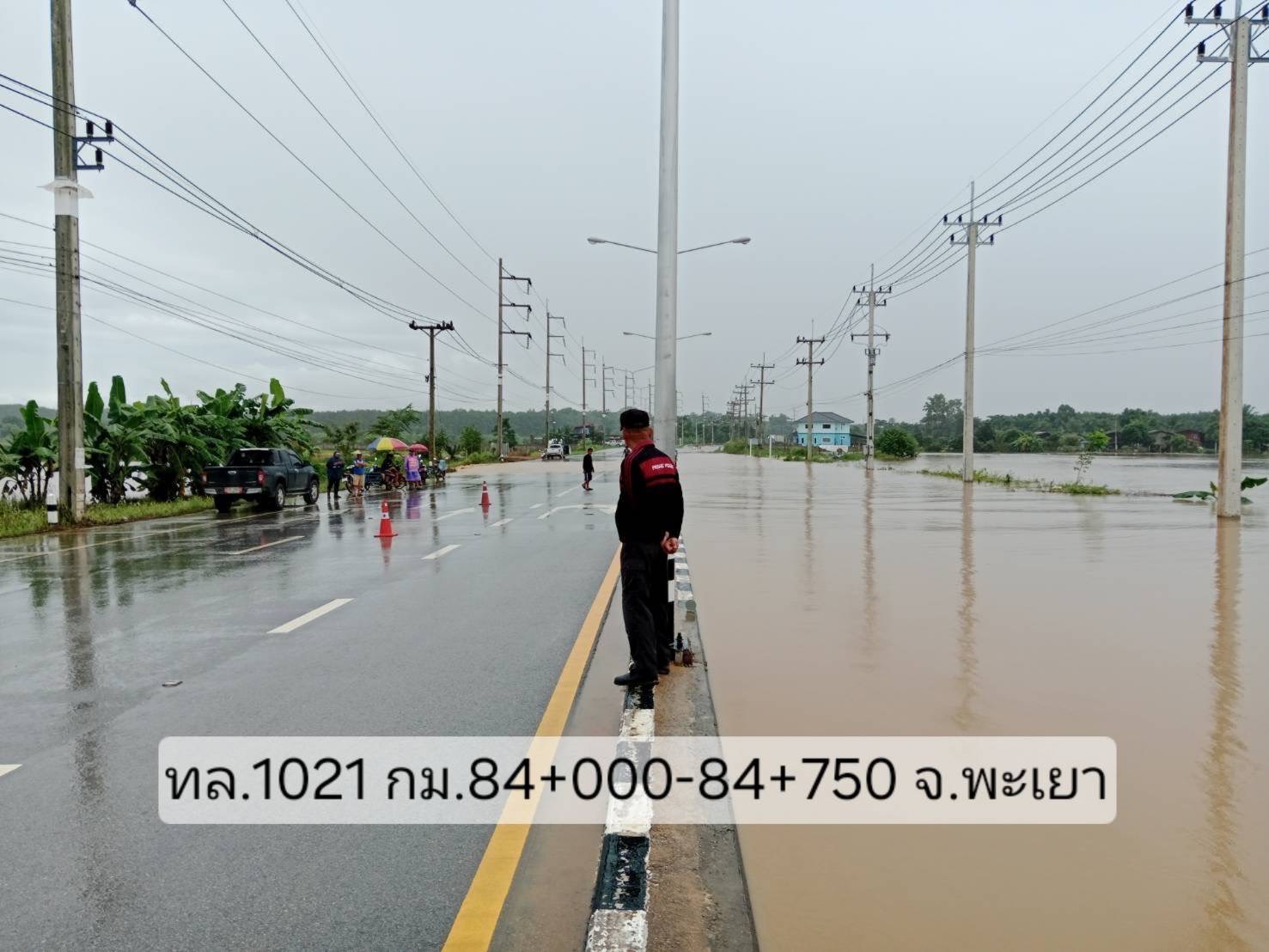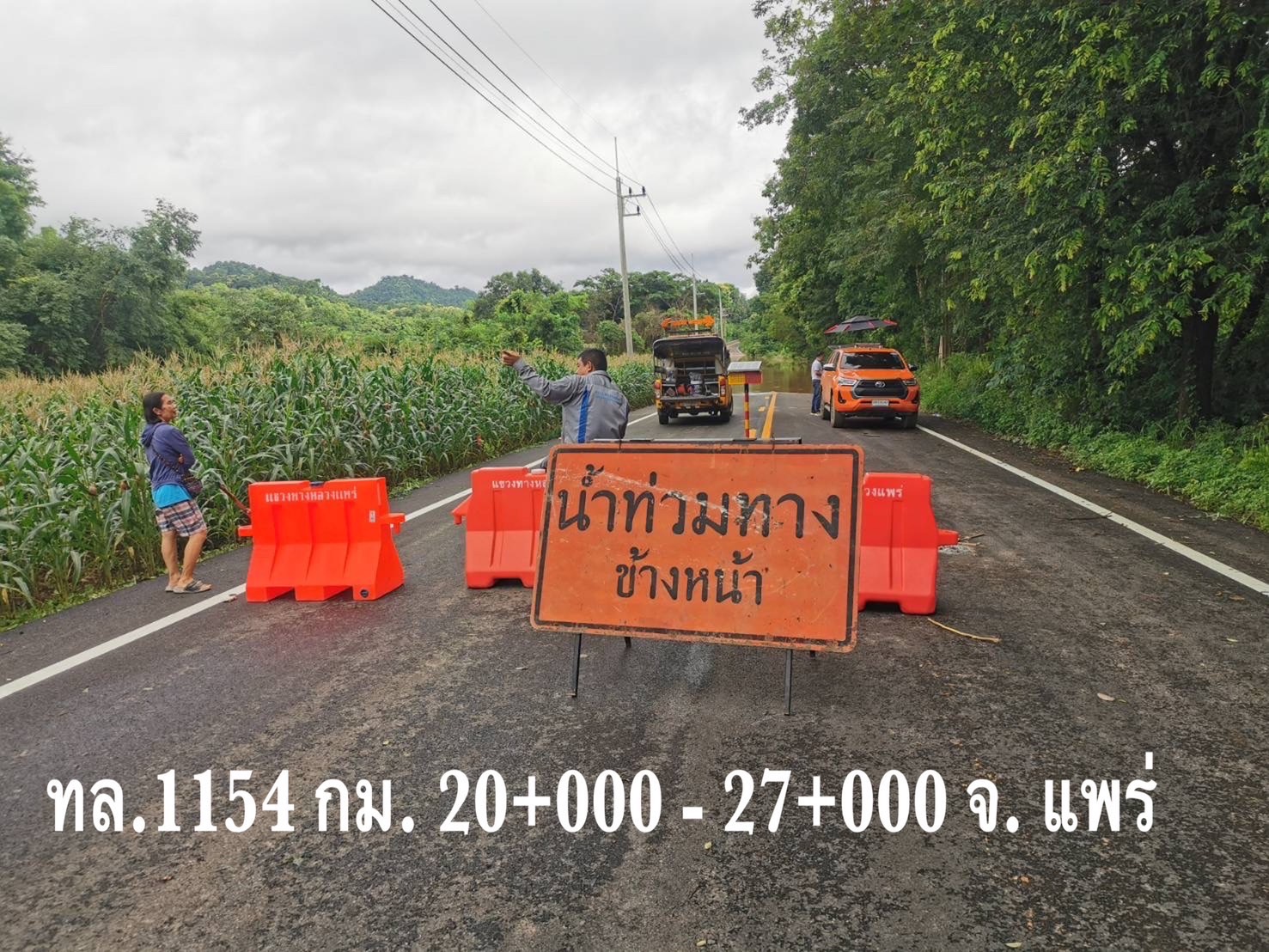 1. ทางหลวงหมายเลข 1154 สอง – แก่งเสือเต้น ช่วง กม.ที่ 20+275 – 21+200 ในพื้นที่อำเภอสอง จังหวัดแพร่ ระดับน้ำสูง 80 ซม. แนะนำใช้ทล.103 แทน