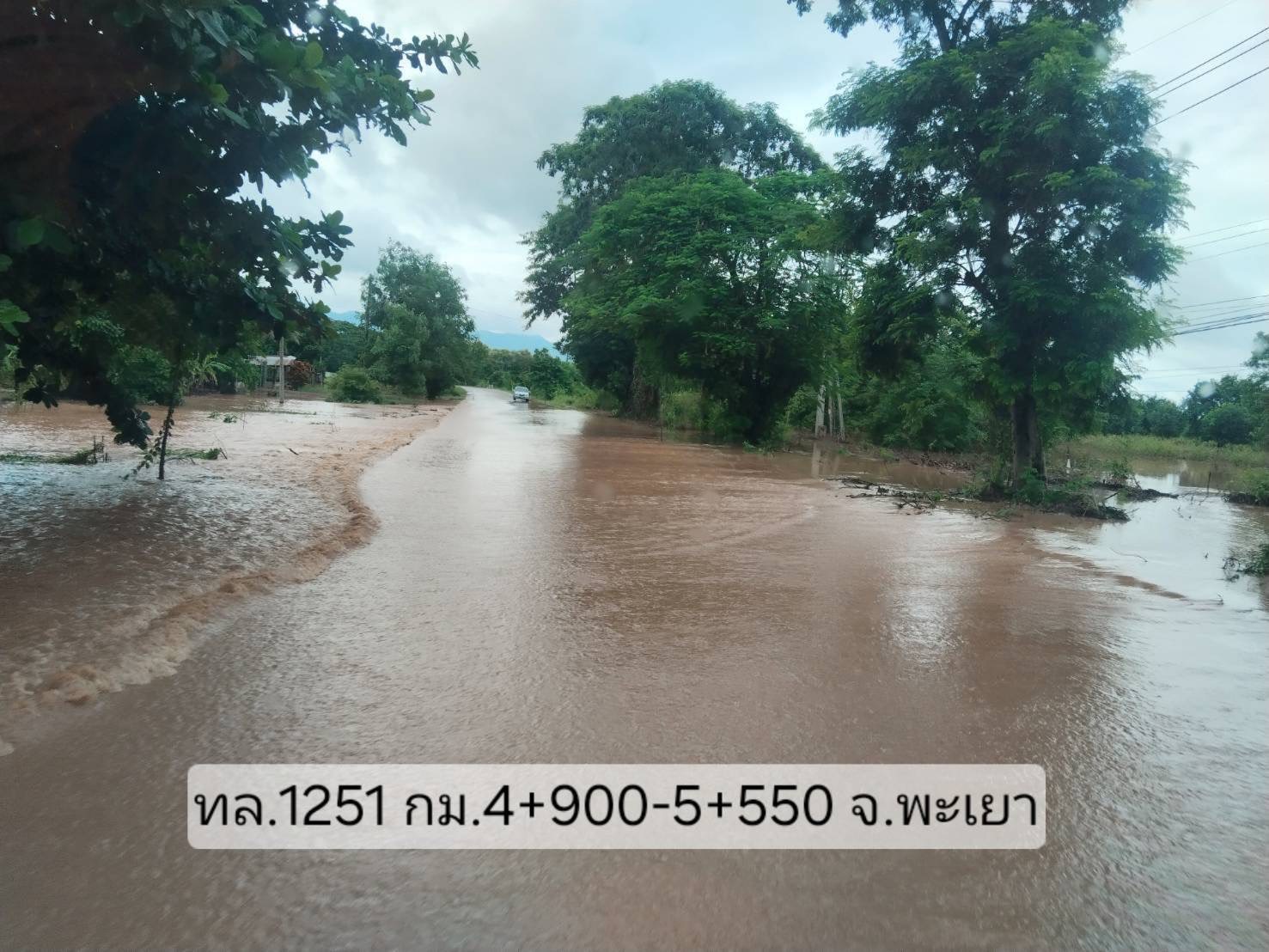 5. ทางหลวงหมายเลข 1251 ดอกคำใต้ – บ้านถ้ำ ช่วง กม.ที่ 4+100 – 4+300 ในพื้นที่อำเภอดอกคำใต้ จังหวัดพะเยา ระดับน้ำสูง 40 ซม.