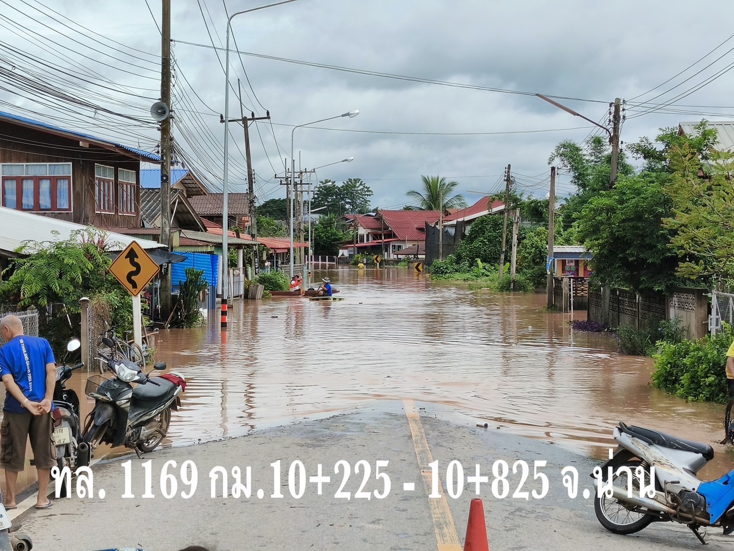 3. ทางหลวงหมายเลข 1169 บ่อเกลือ - เฉลิมพระเกียรติ ช่วง กม.ที่ 10+225 – 10+825 ในพื้นที่อำเภอภูเพียง จังหวัดน่าน ระดับน้ำสูง 70 – 80 ซม.