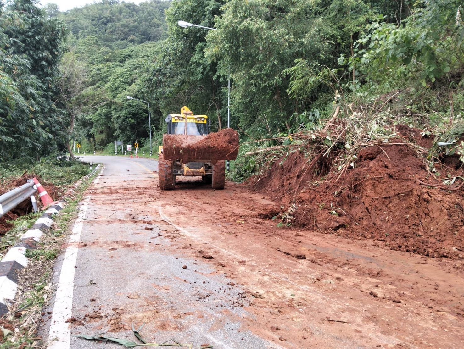 1.ทางหลวงหมายเลข 1093 ขุนห้วยไคร้ – ผาตั้ง ช่วง กม.ที่ 49+100 – 49+150 ในพื้นที่อำเภอเวียงแก่น จังหวัดเชียงราย เกิดเหตุดินสไลด์ ปัจจุบันเจ้าหน้าที่พร้อมเครื่องจักรกำลังเคลียร์พื้นที่