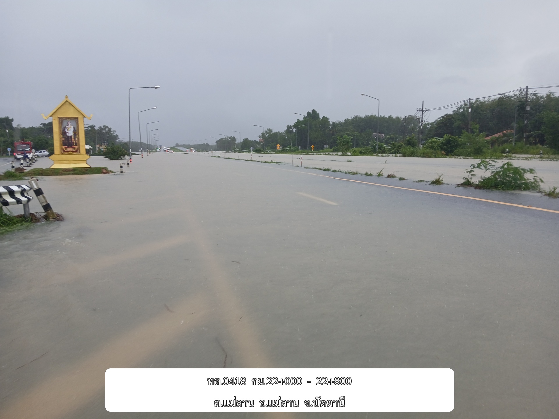 •ทล.42 นาจวก – ดอนยาง ช่วง กม.ที่ 78+800 - 79+200 อ.โคกโพธิ์ จ.ปัตตานี ระดับน้ำ 15 ซม.
