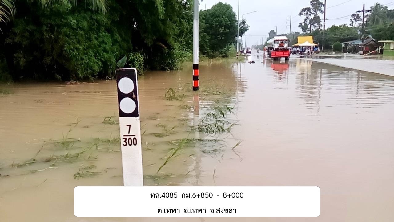 - ทล.4085 ปากน้ำเทพา – ธารคีรี ช่วง กม.ที่ 3+000 - 12+000 อ.เทพา ระดับน้ำ 35 - 90 ซม.