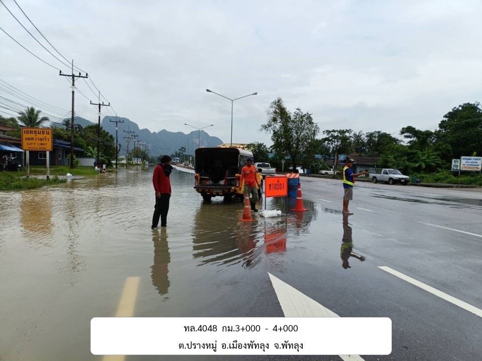- ทล.4 เนินพิชัย – คลองหวะ ช่วง กม.ที่ 1255+900 - 1256+400 อ.หาดใหญ่ ระดับน้ำ 50 ซม.