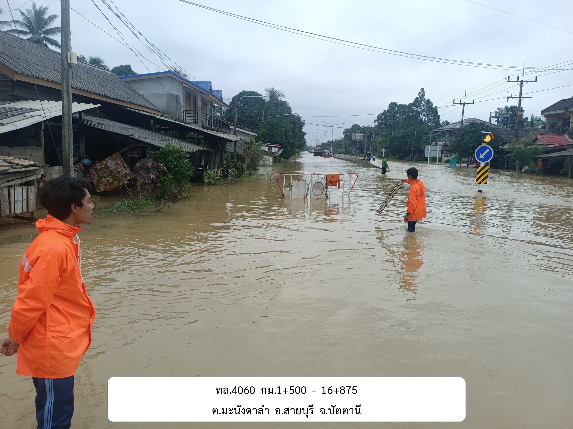 ทล.4060 สายบุรี – กะรุบี ช่วง กม.ที่ 1+500 - 16+875 อ.สายบุรี ระดับน้ำ 40 ซม.