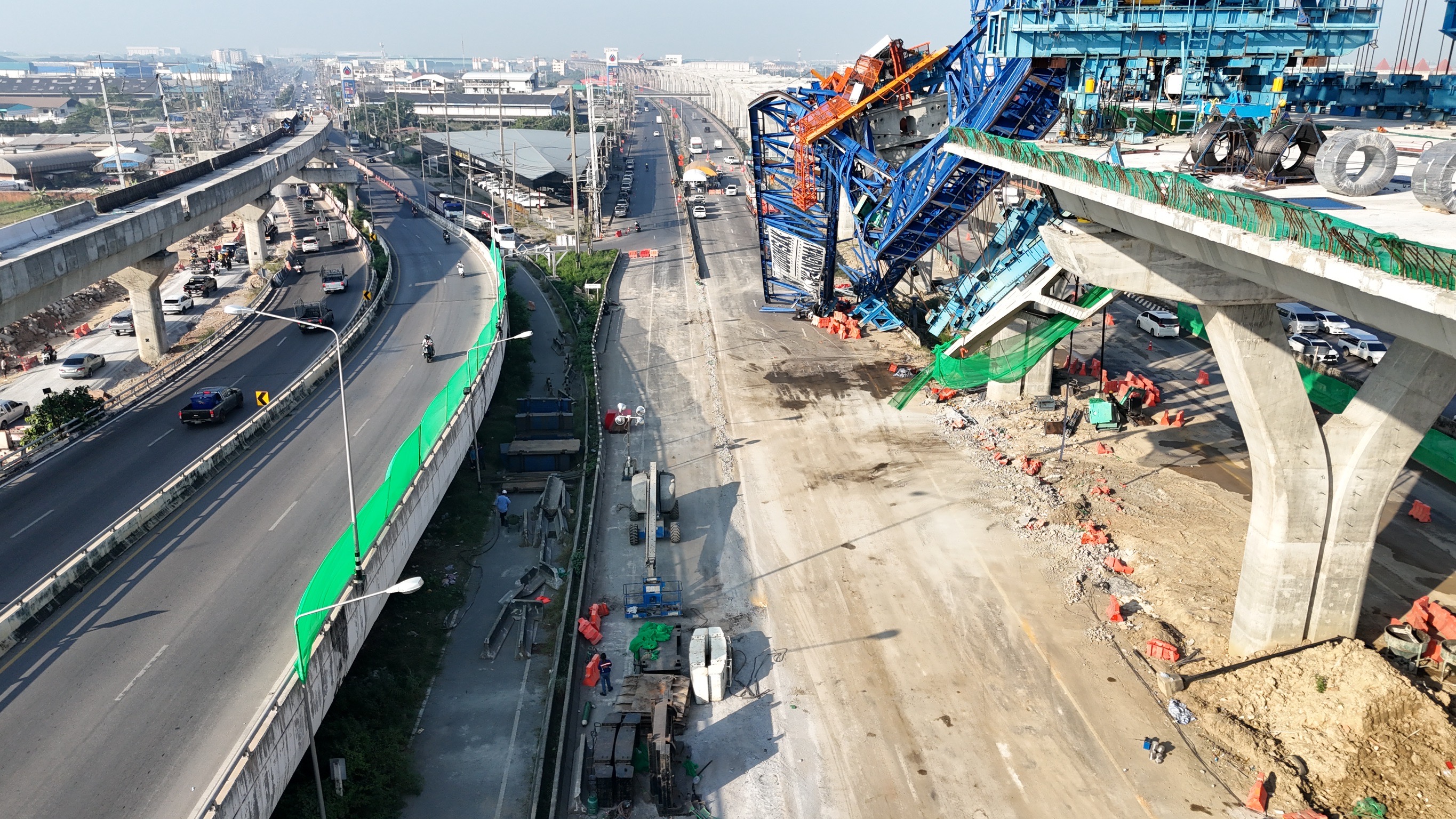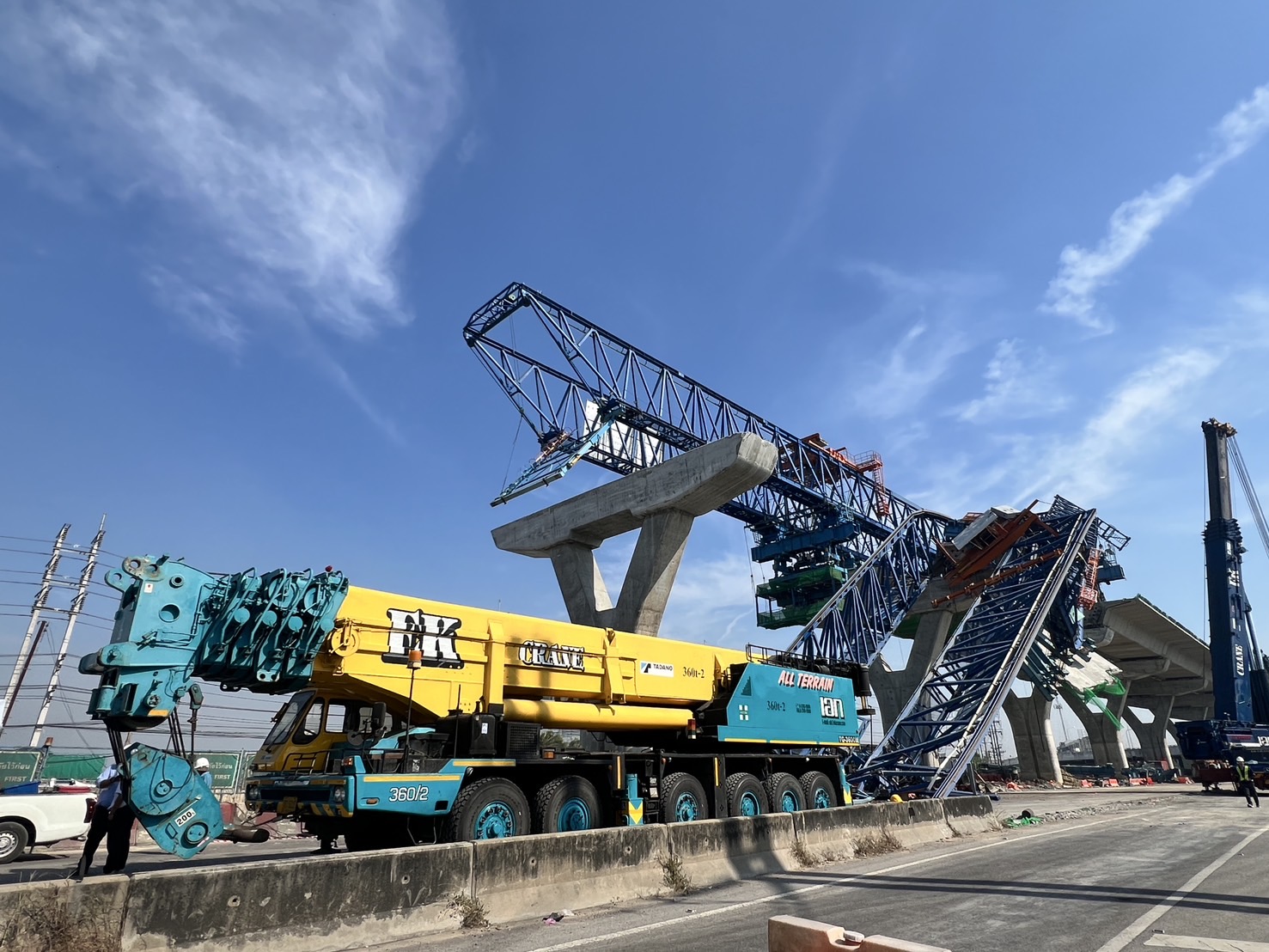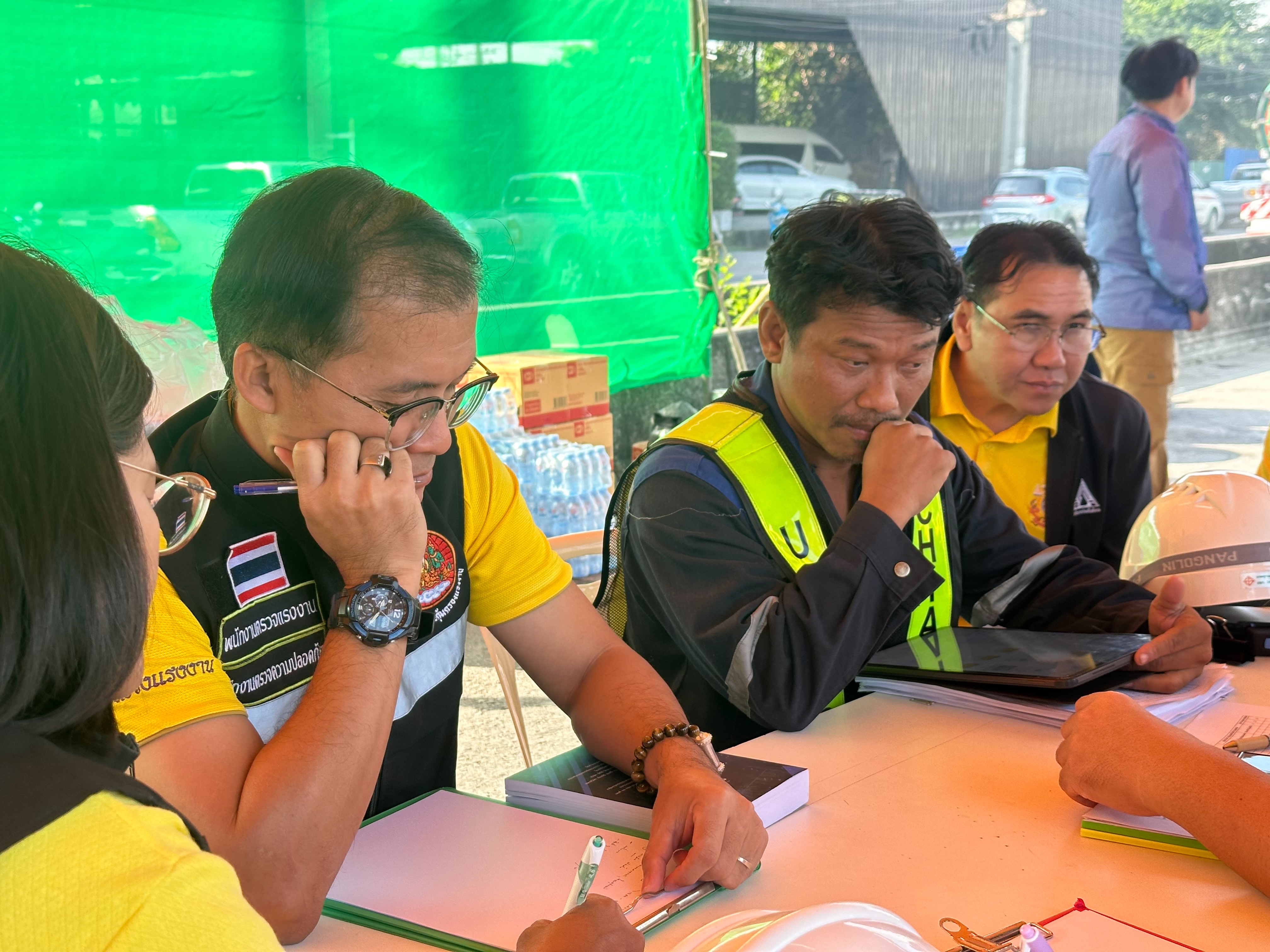 สำหรับความคืบหน้าการเคลียร์พื้นที่ เจ้าหน้าที่ได้ทำการติดตั้งอุปกรณ์ตรวจวัดการเคลื่อนตัวของโครงสร้างตอม่อเสร็จเรียบร้อยแล้วเมื่อวานนี้ และช่วงเช้าวันนี้ ทีมงานที่เกี่ยวข้องทุกฝ่าย กำลังประชุมวางแผนเพื่อหาข้อสรุปในการกำหนดจุดติดตั้งเครนเพื่อประคองโครงสร้างเหล็กและยกชิ้นส่วนพื้นสะพาน (segment) ที่ค้างอยู่ลงมา พร้อมทั้ง อุปกรณ์และชุดอุปกรณ์ Safety เพื่อความปลอดภัยในการเริ่มทยอยยกชิ้นส่วนสะพานคอนกรีตที่ยังติดค้างอยู่ลงมาด้านล่าง โดยการดำเนินการทั้งหมดนี้จะอยู่ภายใต้การกำกับและควบคุมของทีมวิศวกรผู้เชี่ยวชาญตลอดเวลา