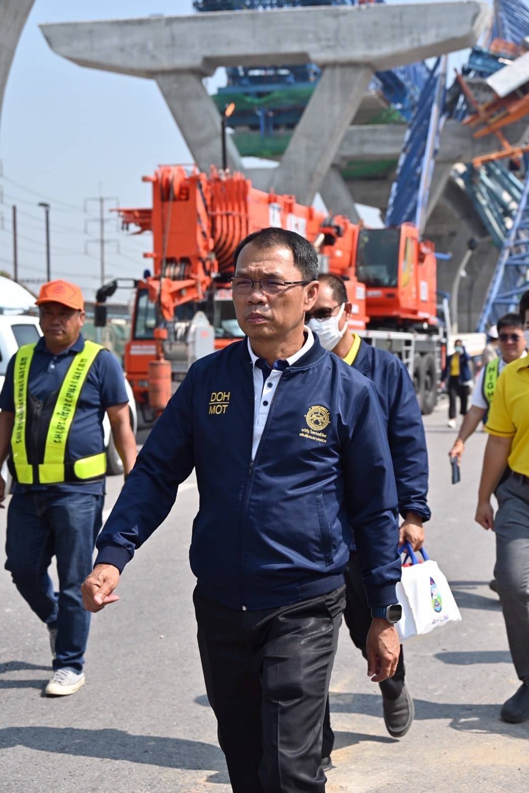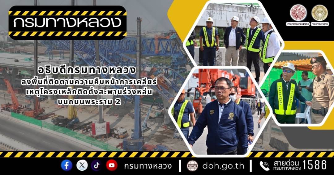 นายอภิรัฐ ไชยวงศ์น้อย อธิบดีกรมทางหลวง ลงพื้นที่ติดตามความคืบหน้าการรื้อถอนโครงสร้างเหล็กและชิ้นส่วนสะพานคอนกรีตที่ร่วงหล่นบนทางหลวงหมายเลข 35 (ถนนพระราม 2) พร้อมประสานความร่วมมือกับหน่วยงานต่างๆ เพื่อเร่งแก้ไขปัญหา