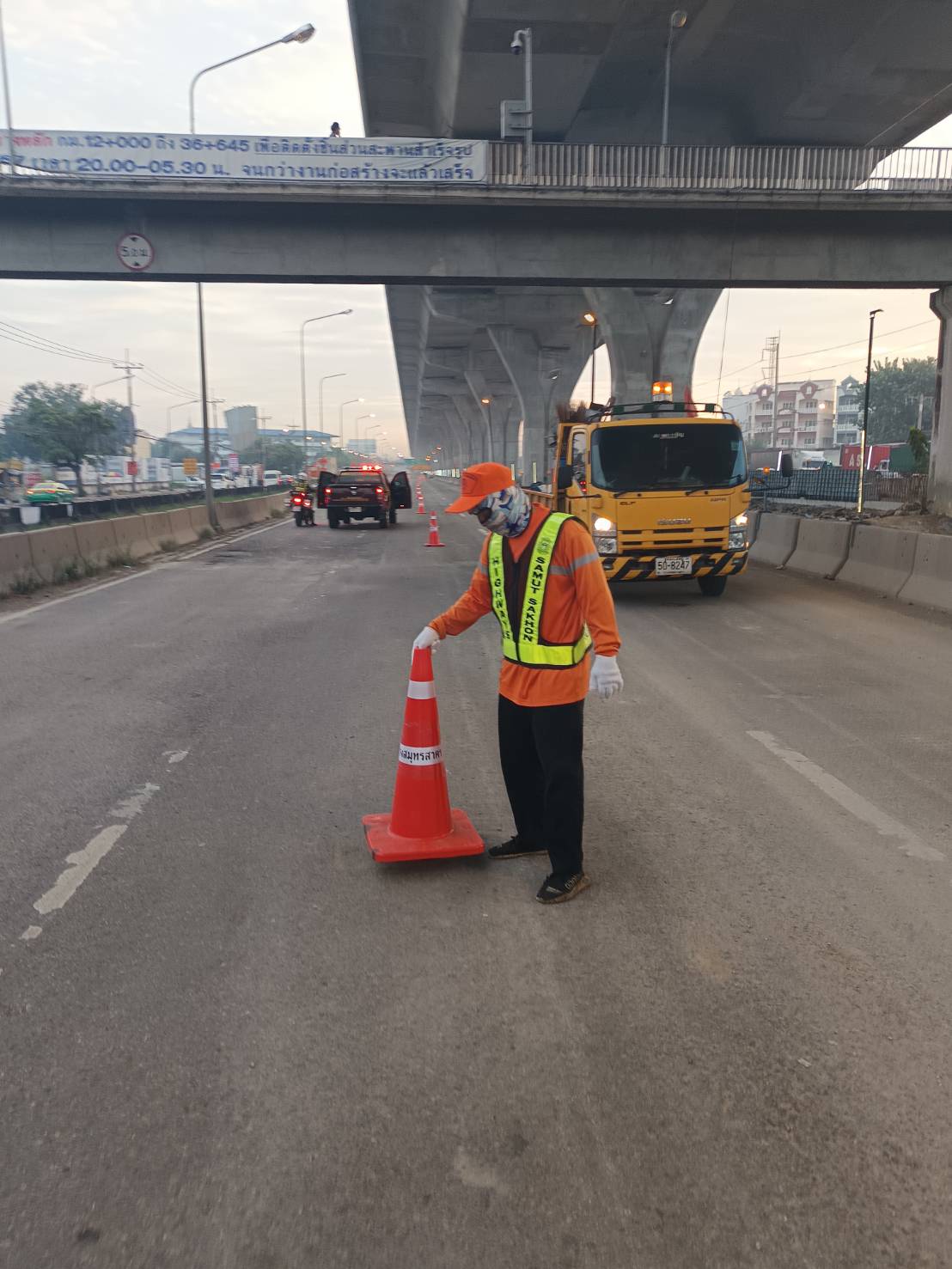 ทั้งนี้ การดำเนินภารกิจดังกล่าว จะอยู่ภายใต้การควบคุมของวิศวกรผู้เชี่ยวชาญ และทีมเฝ้าระวังมอนิเตอร์การเคลื่อนตัวของโครงสร้างเหล็กที่ติดค้างอยู่ เช่นเดียวกับที่ได้ดำเนินการมาอย่างต่อเนื่อง เพื่อป้องกันเหตุเกิดซ้ำและให้เกิดความปลอดภัยสูงสุด ในส่วนของการบริหารจัดการและอำนวยการจราจร โดยแขวงทางหลวงสมุทรสาคร ร่วมกับ ตำรวจทางหลวง 1 กองกำกับ 2 (นครปฐม) อำนวยความสะดวกด้านการจราจร โดยเปิดช่องทางพิเศษ (1 ช่องจราจร) ทางหลวงหมายเลข 35 ระหว่างกม.20+900 - กม.21+800 ตั้งแต่เวลา 07.00 น. เป็นต้นไป เพื่อบรรเทาปัญหาการจราจรติดขัดและอำนวยความสะดวกให่แก่ประชาชน