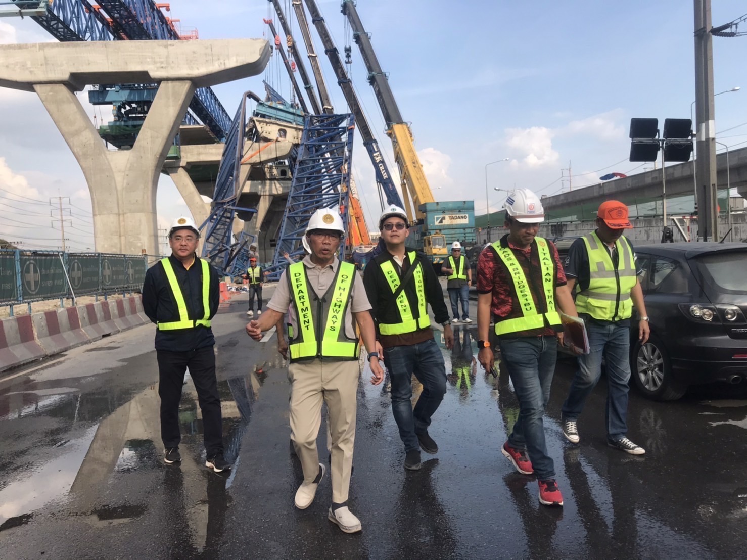 นายอภิรัฐ ไชยวงศ์น้อย อธิบดีกรมทางหลวง ลงพื้นที่กำกับและติดตามการดำเนินการรื้อและเคลื่อนย้ายโครงเหล็กที่เสียหายด้านซ้ายทางลงจากตอม่อสะพาน บนทางหลวงหมายเลข 35 (ถนนพระราม 2) โดยมีวิศวกรใหญ่กรมทางหลวง ผู้บริหาร ผู้แทนจากวิศวกรรมสถานแห่งประเทศไทย (วสท.) ผู้แทนสภาวิศวกร และทีมวิศวกรผู้เชี่ยวชาญลงพื้นที่ติดตามและควบคุมการทำงานอย่างใกล้ชิด เพื่อให้การดำเนินการเป็นไปด้วยความปลอดภัยและรวดเร็ว อธิบดีกรมทางหลวงเน้นย้ำถึงความสำคัญของความปลอดภัยในการทำงาน และกำชับให้เจ้าหน้าที่ทุกคนปฏิบัติตามขั้นตอนอย่างเคร่งครัด เพื่อป้องกันไม่ให้เกิดอุบัติเหตุซ้ำขึ้นอีก