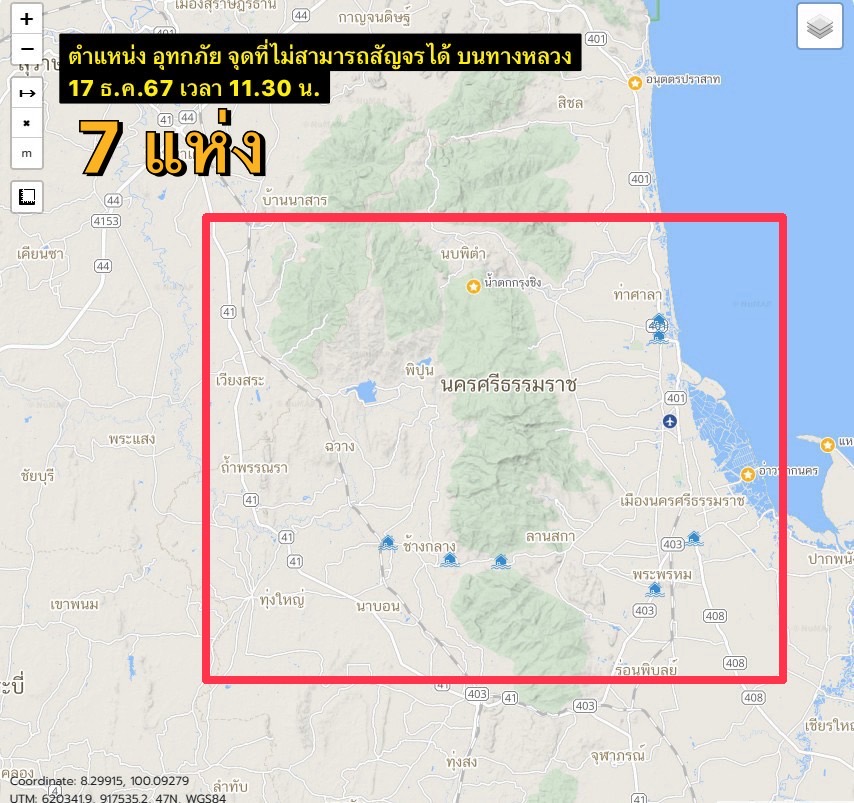 จังหวัดนครศรีธรรมราช การจราจรผ่านไม่ได้จำนวน 7 แห่ง