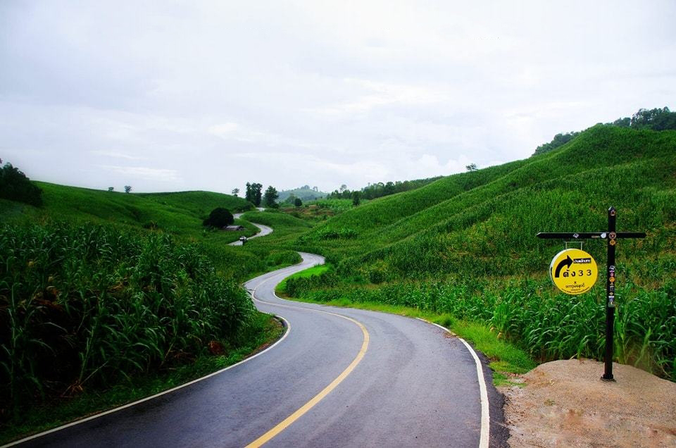 กรมทางหลวง พาเที่ยวโค้ง 33 บ้านแม่โกนเกน อ.แม่สอด จังหวัดตาก ถนนโค้งสวยติดชายแดนเมียนมา จุดเช็คอินใกล้ชิดเนินเขา สลับทุ่งหญ้าธรรมชาติสรรสร้างความสวยงาม