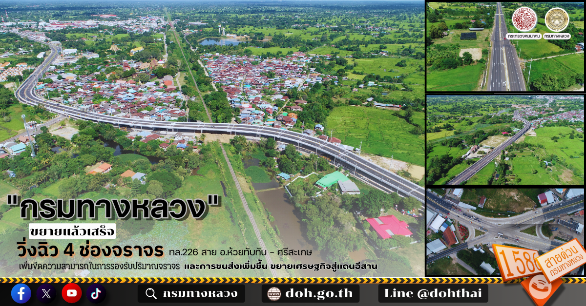 กรมทางหลวงก่อสร้างขยายทางหลวงหมายเลข 226 สาย อ.ห้วยทับทัน - ศรีสะเกษ แล้วเสร็จ ขยายการลงทุน กระตุ้นเศรษฐกิจ ส่งเสริมคุณภาพชีวิตสู่ชุมชน
