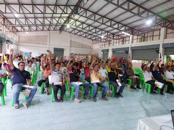 ผู้เข้าร่วมประชุม เห็นด้วยกับการดำเนินการก่อสร้าง คิดเป็นร้อยละ 100