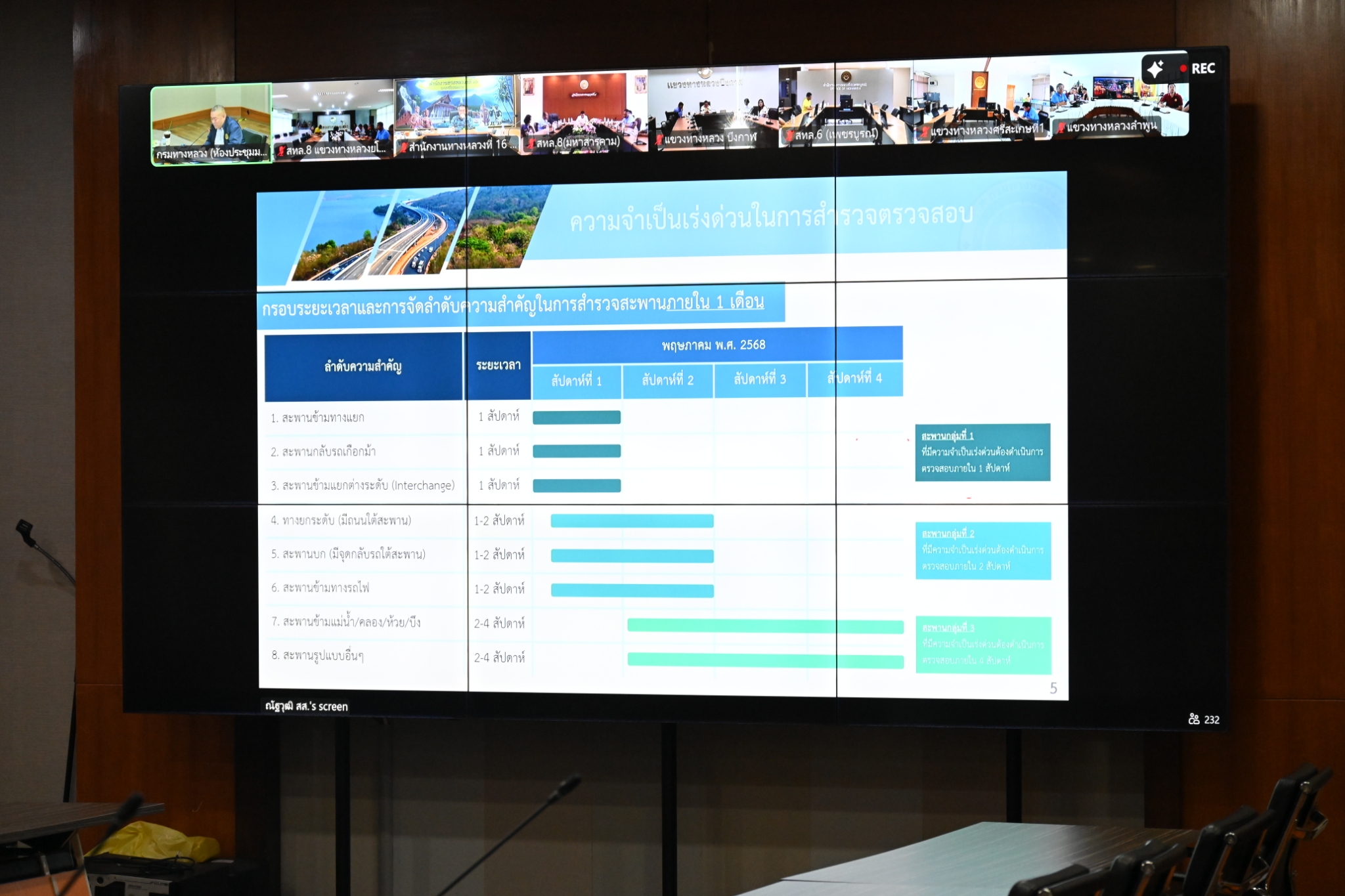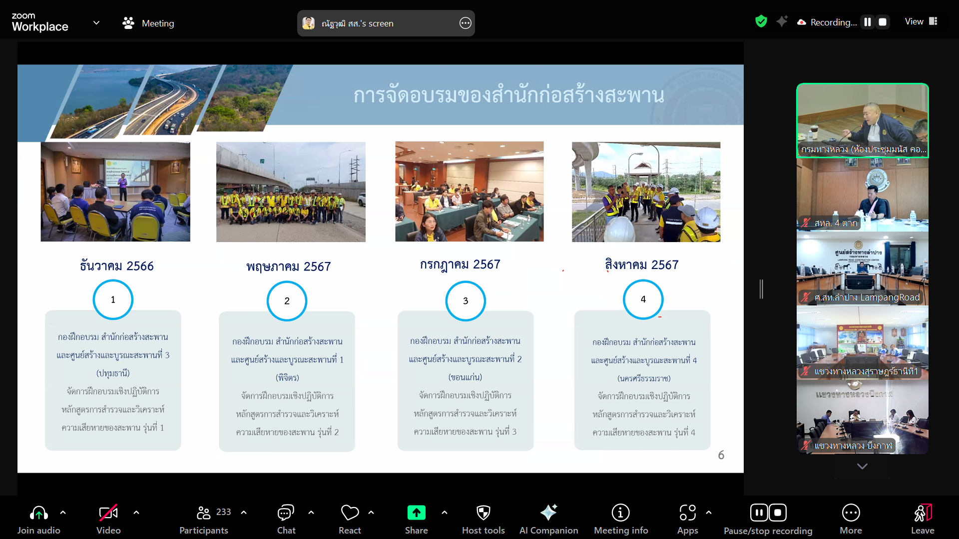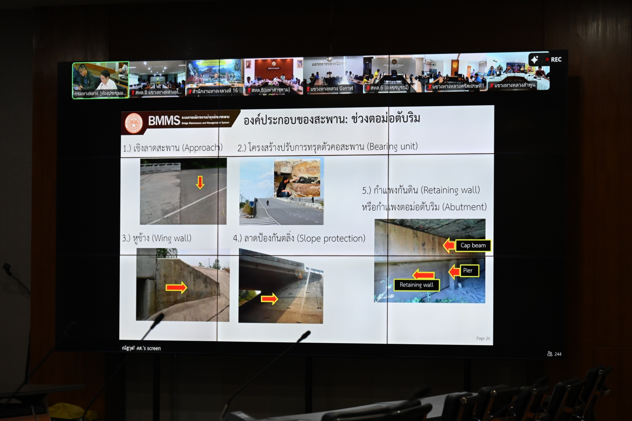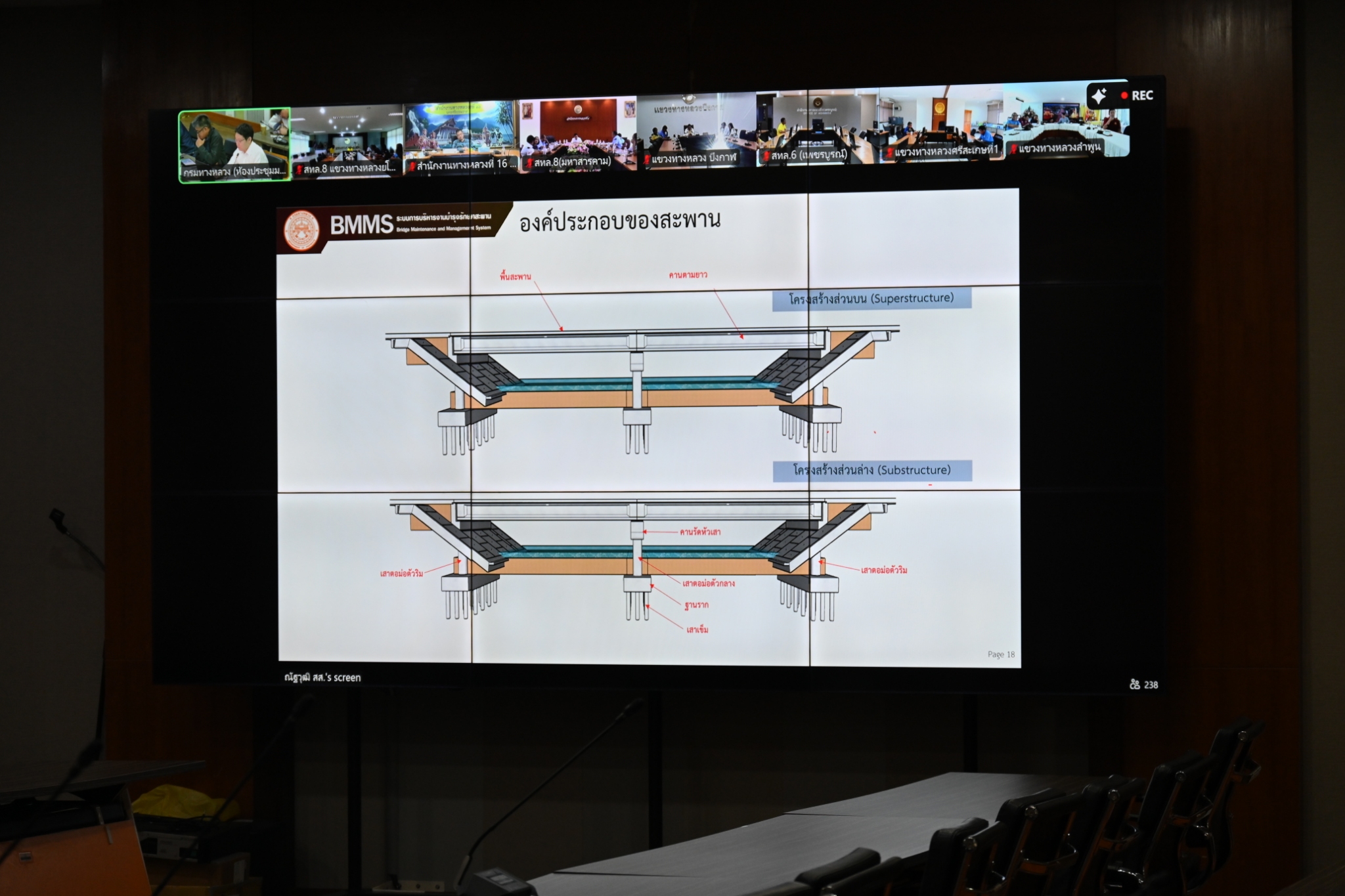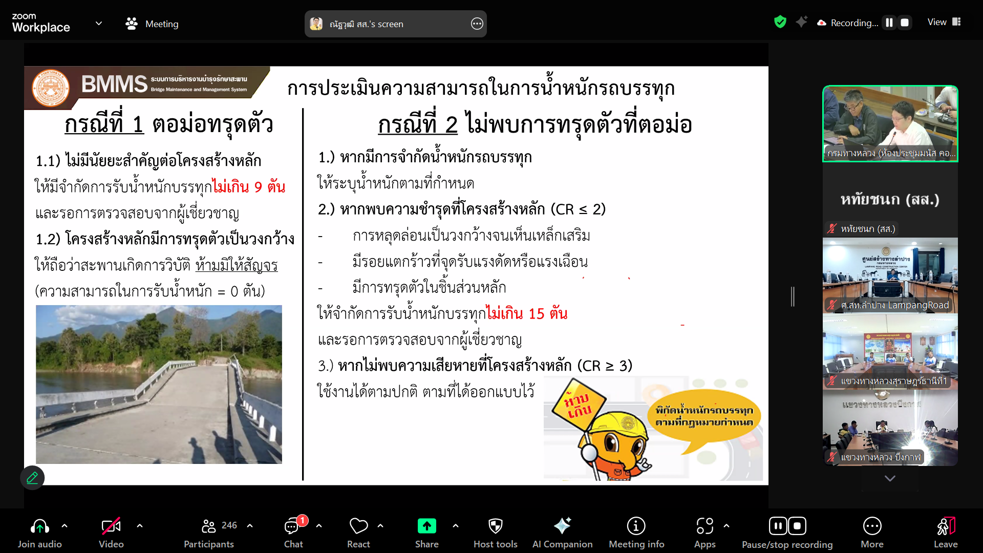 วันนี้ (2 พฤษภาคม 2568) นายพงศกร จุลละโพธิ รองอธิบดีฝ่ายบำรุงทาง เป็นประธานในการประชุมหารือร่วมกับ วิศวกรใหญ่ด้านวางแผนและวางโครงการก่อสร้าง พร้อมด้วยผู้บริหารหน่วยงานส่วนกลางและส่วนภูมิภาคทั่วประเทศ โดยการประชุมในครั้งนี้มีวัตถุประสงค์เพื่อหารือแนวทางการตรวจสอบและบำรุงรักษาสะพานทั่วประเทศให้สามารถใช้งานได้ตามปกติและประชาชนได้รับความปลอดภัยสูงสุด ผ่านสื่ออิเล็กทรอนิกส์แอปพลิเคชั่น Zoom Cloud Meeting