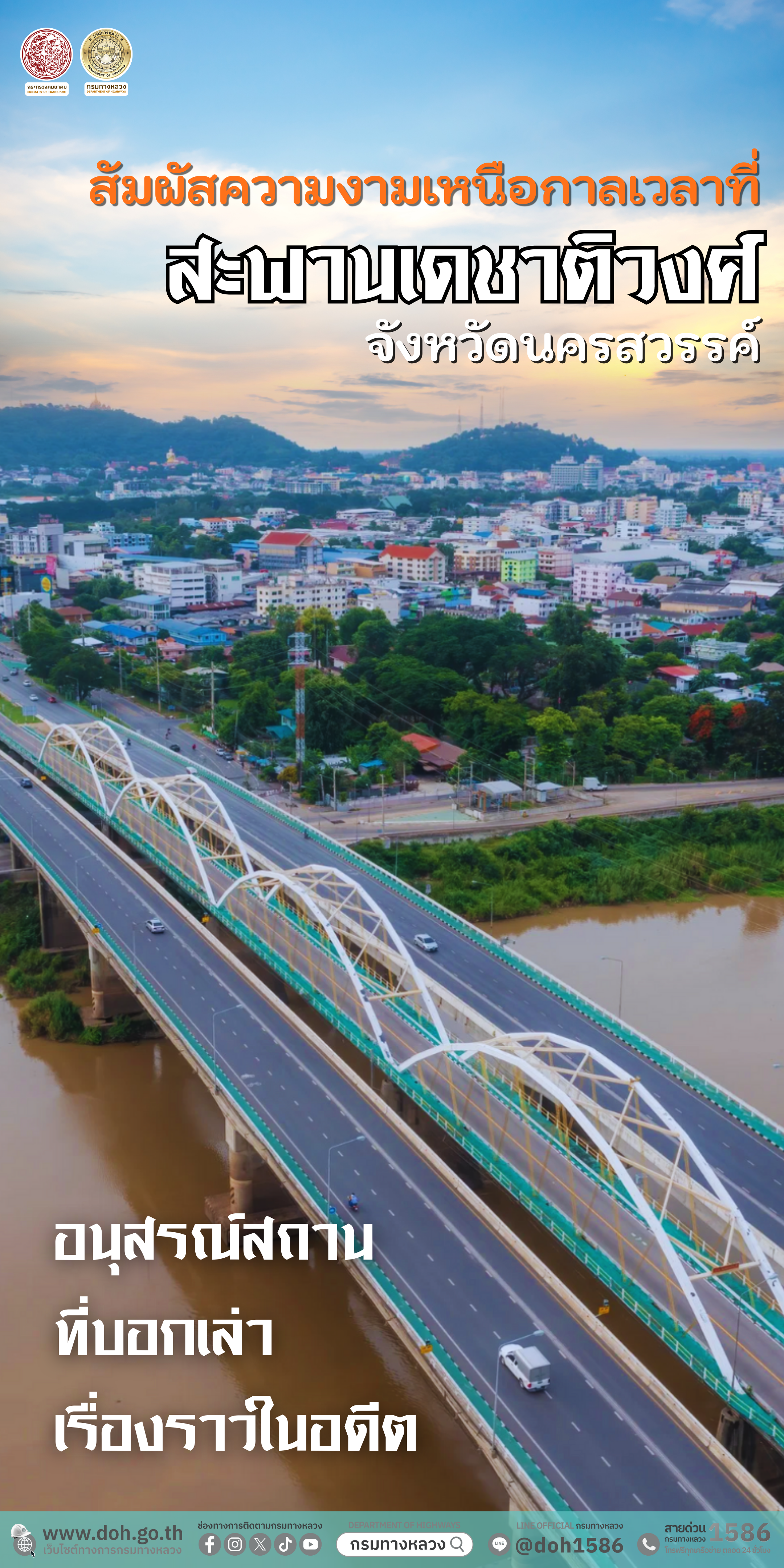 จังหวัดนครสวรรค์ ประตูสู่ภาคเหนือไม่ได้มีดีแค่เป็นทางผ่าน แต่ยังมีจุดแวะพักที่เต็มไปด้วยเรื่องราว และทัศนียภาพอันน่าประทับใจ นั่นคือ สะพานเดชาติวงศ์ที่ทอดยาวข้ามแม่น้ำเจ้าพระยา เชิญชวนนักเดินทาง ทุกท่านที่กำลังขับรถท่องเที่ยวบนถนนสายหลักให้ลองแวะพักและสัมผัสความงามเหนือกาลเวลาแห่งนี้