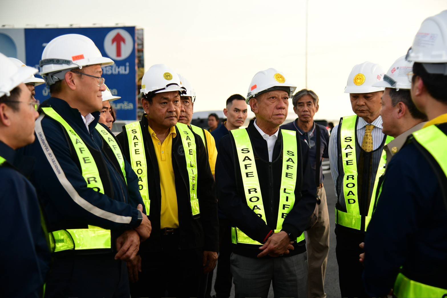 นายพิพัฒน์ รัชกิจประการ รองนายกรัฐมนตรีและรัฐมนตรีว่าการกระทรวงคมนาคม พร้อมด้วย ดร.รัชพงศ์ ชูแก้ว เลขานุการ รวค. นายสาโรจน์ สามารถ รองเลขาธิการนายกรัฐมนตรีฝ่ายการเมือง นายชยธรรม์ พรหมศร ปลัดกระทรวงคมนาคม นายปิยพงษ์ จิวัฒนกุลไพศาล อธิบดีกรมทางหลวง นายสุรเชษฐ์ เหล่าพูลสุข ผู้ว่าการการทางพิเศษแห่งประเทศไทย ร้อยตำรวจเอกเขตรัฐ ชาญศิลป์ รองผู้ว่าราชการจังหวัดสมุทรสาคร รักษาการผู้ว่าราชการจังหวัด นายกองค์การบริหารส่วนจังหวัดสมุทรสาคร หัวหน้าส่วนราชการในพื้นที่โครงการ และผู้บริหารกระทรวงคมนาคม ร่วมลงพื้นที่ติดตามความคืบหน้าโครงการทางหลวงพิเศษหมายเลข 82 (M82) สายทางยกระดับบางขุนเทียน - เอกชัย - บ้านแพ้ว ซึ่งเป็นโครงการสำคัญที่ประชาชนรอคอยมายาวนาน เพื่อบรรเทาปัญหาการจราจรบนถนนพระราม 2 เส้นทางหลักสู่ภาคใต้ของประเทศ เมื่อวันที่ 15 ตุลาคม 2568