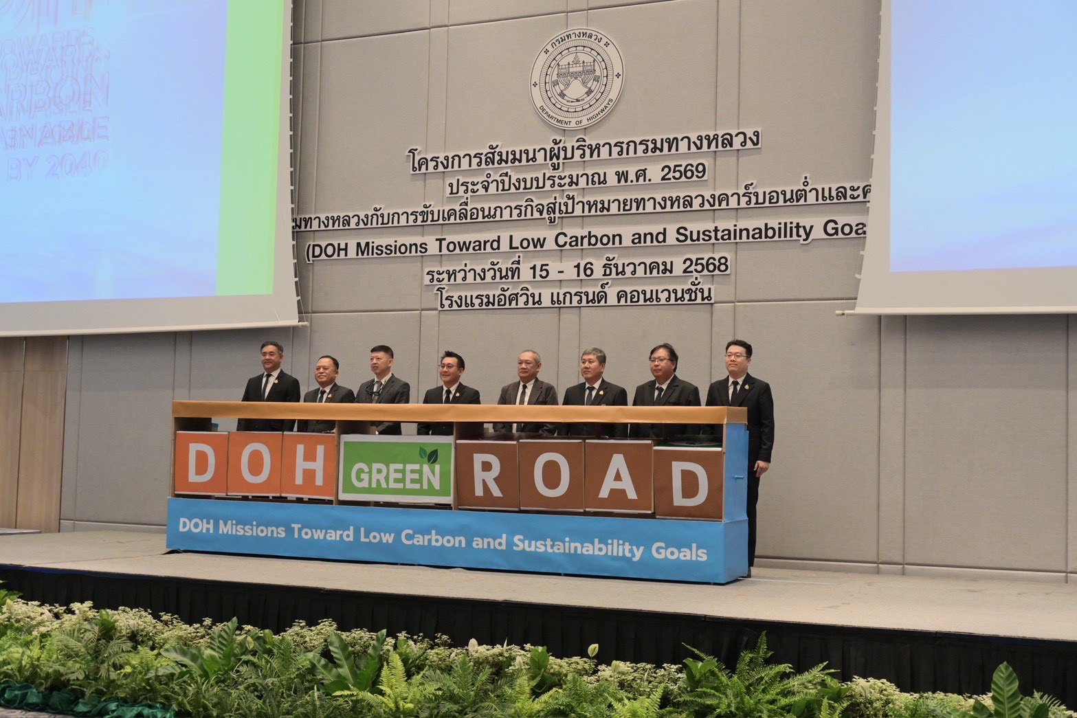 การสัมมนาครั้งนี้เป็นเวทีสำคัญ ที่กรมทางหลวงได้แสดงเจตนารมณ์ร่วมกันในการดำเนินงานด้านสิ่งแวดล้อมขององค์กรอย่างเป็นรูปธรรมโดยได้ลงนาม “ปฏิญญากรมทางหลวงมุ่งสู่ทางหลวงคาร์บอนต่ำและความยั่งยืนภายในปี ค.ศ. 2040” ซึ่งเป็นจุดเริ่มต้นของการร่วมกันขับเคลื่อนภารกิจทางหลวงในการลดคาร์บอนและการพัฒนาอย่างยั่งยืน เดินหน้าขับเคลื่อน 6 ประเด็นหลัก ได้แก่ การลดการปล่อยก๊าซเรือนกระจก การพัฒนาทางหลวงให้ยืดหยุ่นต่อสภาพภูมิอากาศ การนำเทคโนโลยีดิจิทัลและนวัตกรรมมาใช้ การบริหารจัดการทรัพยากรตามแนวคิดเศรษฐกิจหมุนเวียน การมีส่วนร่วมของประชาชนและภาคีเครือข่าย และการยกระดับศักยภาพบุคลากรด้านความยั่งยืน