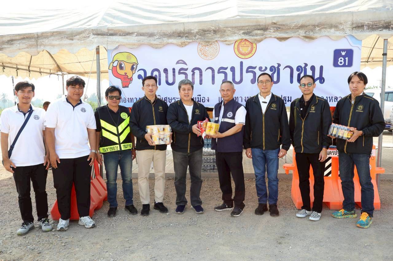 นายนที ขวัญแพ ผู้อำนวยการแขวงทางหลวงนครปฐม พร้อมข้าราชการและเจ้าหน้าที่ให้การต้อนรับ ณ จุดบริการ M81 กม.71+000 Lt.,Rt.