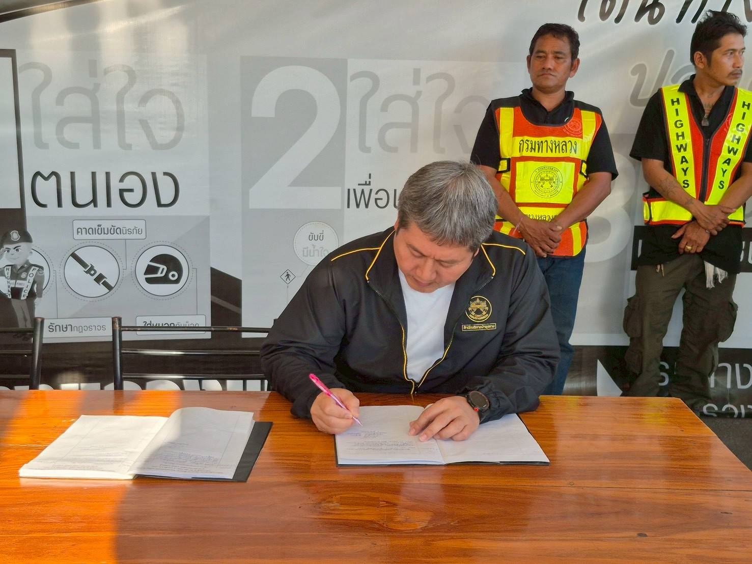 นายพรชัย ศิลารมย์ ผู้อำนวยการแขวงทางหลวงกาญจนบุรี พร้อมเจ้าหน้าที่ให้การต้อนรับ ณ จุดบริการ M81 กม.47+000 Lt.,Rt.