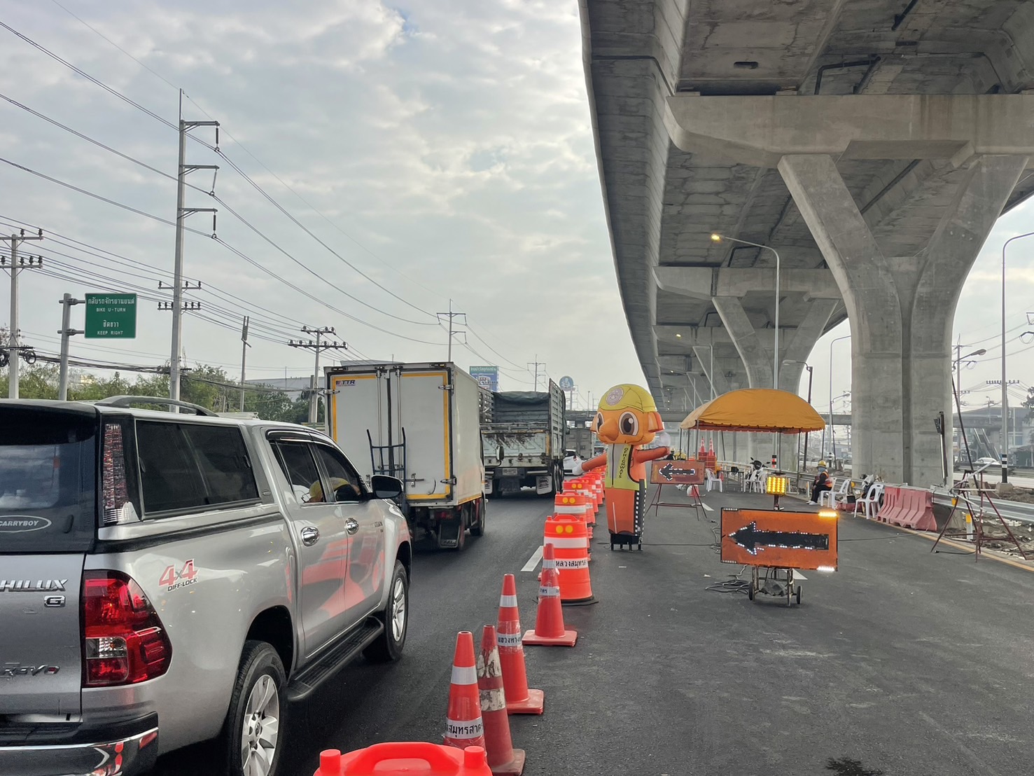 นอกจากนี้ กรมทางหลวงยังได้ปรับปรุงจุดเชื่อมเข้า-ออก ระหว่างทางหลักและทางขนานเพิ่มเติม เพื่อให้รถไหลเวียนได้ดียิ่งขึ้น ไม่ติดสะสมเป็นคอขวด โดยประชาชนยังคงสามารถใช้ช่องทางขนาน (Frontage Road) ได้ตามปกติ พร้อมทั้งประสานตำรวจทางหลวงและอาสาจราจรเข้าประจำจุดตลอด 24 ชั่วโมง เพื่อคอยดูแลความสะดวกและเข้าช่วยเหลือทันทีหากมีอุบัติเหตุ ทั้งนี้ เนื่องจากมีการปิดพื้นที่บางส่วนเพื่อความปลอดภัยสูงสุดในการทำงาน อาจทำให้การจราจรหนาแน่นกว่าปกติ จึงขอความร่วมมือพี่น้องประชาชนเผื่อเวลาเดินทาง หรือหลีกเลี่ยงเส้นทางในช่วงเวลาเร่งด่วน