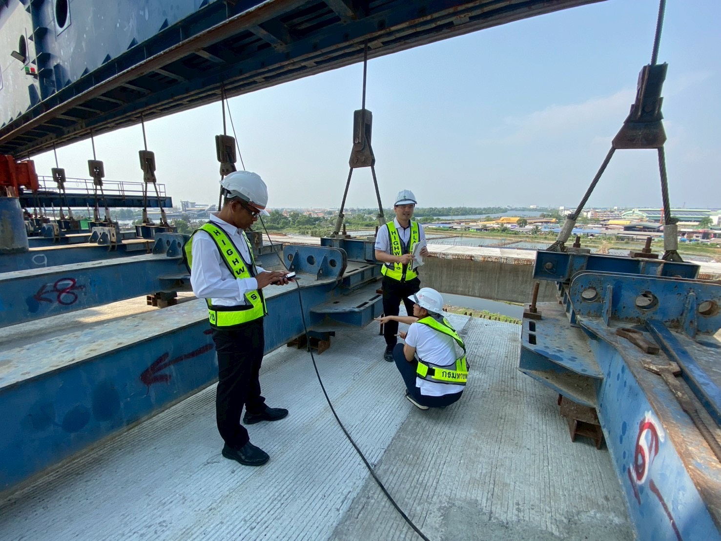 2. งานรื้อถอนโครงสร้างคานคอนกรีตอัดแรงที่เสียหายจากเหตุเครน LG ถล่ม: ปัจจุบันได้เคลื่อนย้าย LG มาติดตั้งบริเวณช่วง Span ที่จะรื้อถอนโครงสร้างคานที่เสียหายชุดแรก พร้อมติดตั้งอุปกรณ์ชุดแขวนชิ้นส่วนคานรูปกล่องแต่ละก้อน รวมถึงติดตั้งระบบตรวจวัดพฤติกรรมโครงสร้างในระหว่างปฏิบัติงานแบบ Real-time (Structural Health Monitoring) แล้วเสร็จเรียบร้อย โดยจะเริ่มขั้นตอนการปลดแรงในลวดอัดแรง (Tendon) และถ่ายน้ำหนัก (Load Transfer) ของ Segment ไปยังชุดแขวนฯ ในคืนวันที่ 19 - 20 ก.พ. 2569 นี้ จากนั้นจะเป็นขั้นตอนการตัดและยกชิ้นส่วนคานรูปกล่องทีละก้อนลงมา เพื่อขนย้ายออกจากพื้นที่ หลังจากนั้นจะเคลื่อนย้าย LG ไปติดตั้งบริเวณช่วง Span ถัดไปที่จะรื้อถอนโครงสร้างคานที่เสียหายชุดที่ 2 และดำเนินการตามขั้นตอนเดียวกันจนแล้วเสร็จต่อไป โดยคาดว่าการรื้อถอนโครงสร้างคานที่เสียหายทั้ง 2 ชุดจะแล้วเสร็จในช่วงกลางเดือนมีนาคม 2569 นี้ ซึ่ง "เร็วกว่าแผนเดิม" ที่กำหนดไว้ (27 มี.ค. 2569) ประมาณ 2 สัปดาห์