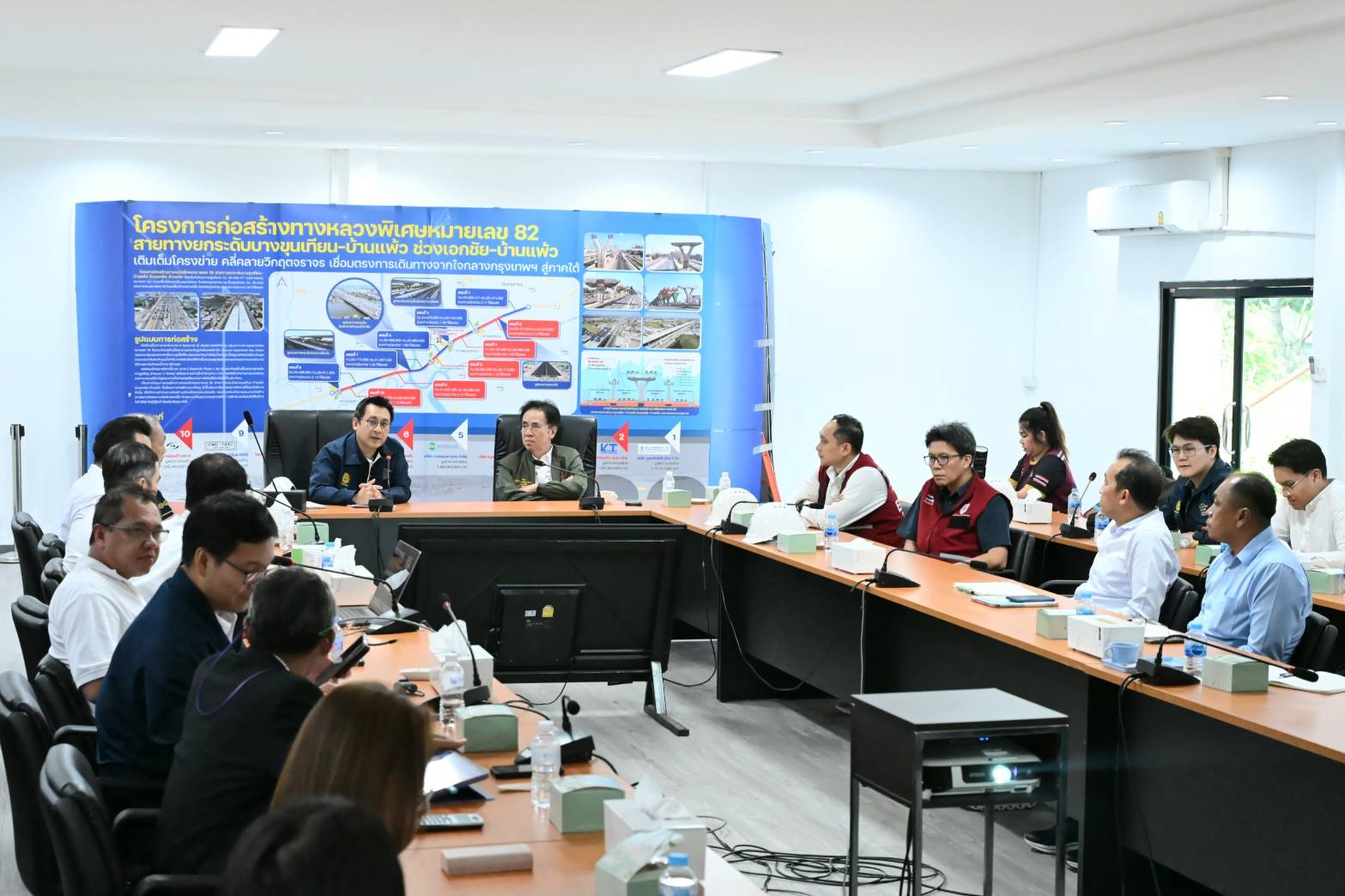 โดยในวันนี้ คณะผู้บริหารกรมทางหลวง และทีม วสท. ได้ร่วมประชุมกัน ณ ศูนย์บริหารการจราจรระหว่างก่อสร้างโครงการ (กม.27) เพื่อวางมาตรการเข้มงวดในการกำกับ ควบคุมความปลอดภัยในการก่อสร้าง รวมถึงติดตามการวางแผนความปลอดภัยในการบริหารและจัดการจราจร ให้มีความรัดกุมและป้องกันความเสี่ยงที่อาจเกิดขึ้นในทุกมิติ ทั้งด้านความสมบูรณ์ของอุปกรณ์ยกติดตั้งชิ้นส่วน (Launching Gantry หรือ LG) ความครบถ้วนของการทดสอบหรือใบรับรองการทดสอบอุปกรณ์ประกอบต่างๆ ตลอดจนกระบวนการปฏิบัติงานในทุกขั้นตอน โดยเฉพาะในช่วงการยกติดตั้งคานคอนกรีต (Segment) รวมทั้งแผนการจัดการจราจรและอำนวยความปลอดภัยระหว่างก่อสร้าง การสื่อสารประชาสัมพันธ์เรื่องการปรับผังการเบี่ยงจราจรที่ต้องชัดเจน และแจ้งให้ผู้ใช้ทางทราบเป็นการล่วงหน้า