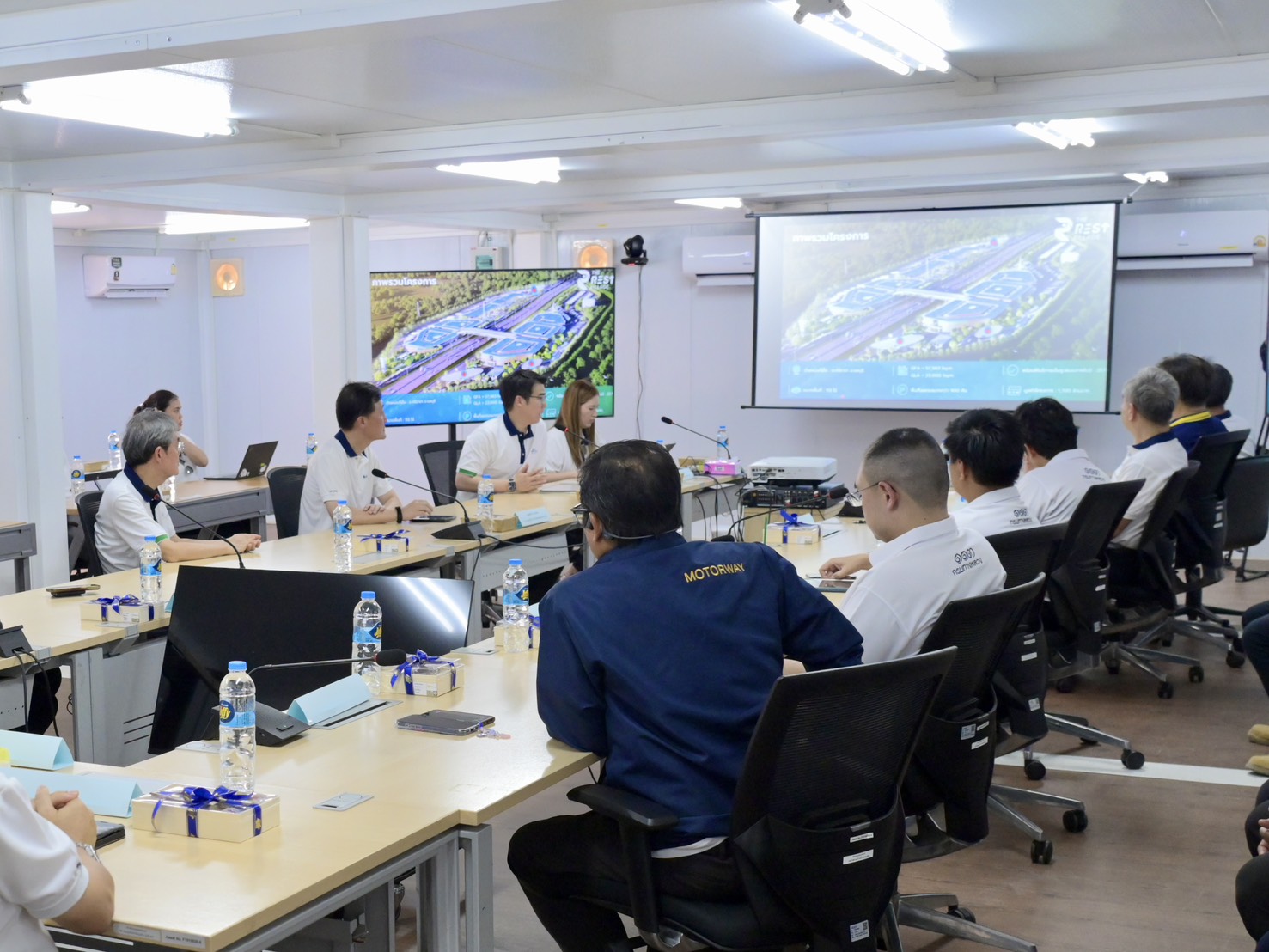 ต่อมา คณะฯ ได้ประชุมติดตามความคืบหน้าโครงการก่อสร้าง The Rest Village อาทิ การก่อสร้างสถานี