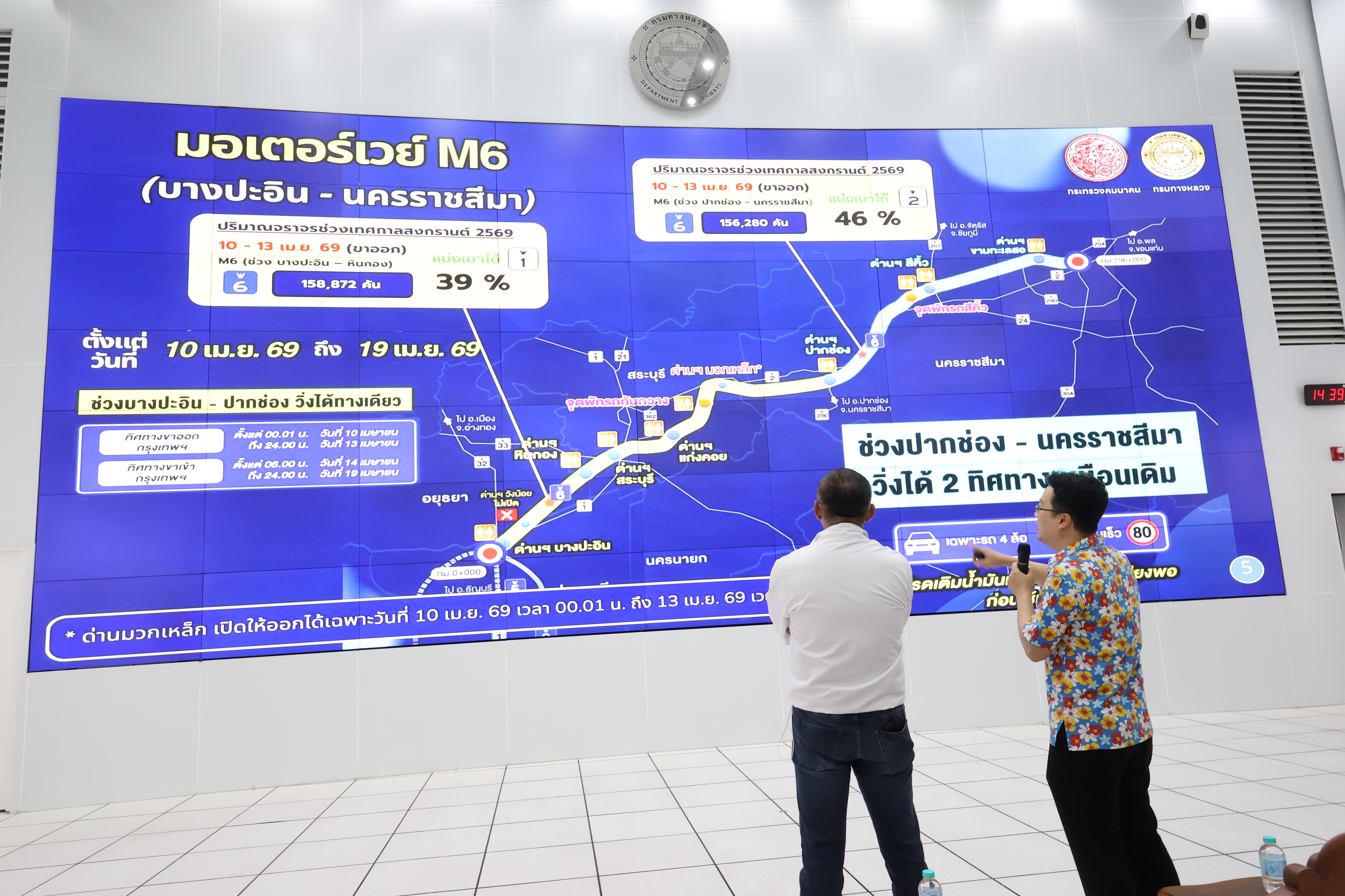 นายชยธรรม์ พรหมศร ปลัดกระทรวงคมนาคม พร้อมด้วย นายทรงยศินทร์ ชนปทาธิป ผู้ตรวจราชการกระทรวงคมนาคม ลงพื้นที่ตรวจเยี่ยมและรับฟังการบรรยายสรุปสภาพการจราจร รวมทั้งตรวจความพร้อมในการอำนวยความสะดวกและความปลอดภัย รองรับการเดินทางกลับเข้าสู่กรุงเทพมหานครของประชาชนภายหลังเทศกาลสงกรานต์ 2569 โดยมี นายปิยพงษ์ จิวัฒนกุลไพศาล อธิบดีกรมทางหลวง นายพงษ์พันธ์ จั่นเงิน รองอธิบดีฝ่ายวิชาการ ผู้บริหารและเจ้าหน้าที่กรมทางหลวงให้การต้อนรับ พร้อมนี้ได้มอบกระเช้าเพื่อเป็นกำลังใจแก่เจ้าหน้าที่ ณ ศูนย์บริหารจัดการจราจรและอุบัติเหตุ (Highway Traffic Operation Center: HTOC) กรมทางหลวง ซึ่งเป็นศูนย์กลางในการรวบรวมข้อมูลจราจรแบบเรียลไทม์จากทั่วประเทศ พร้อมติดตามสถานการณ์บนโครงข่ายทางหลวงอย่างใกล้ชิด เพื่อประสานงานแก้ไขปัญหาจุดชะลอตัวได้อย่างทันท่วงที