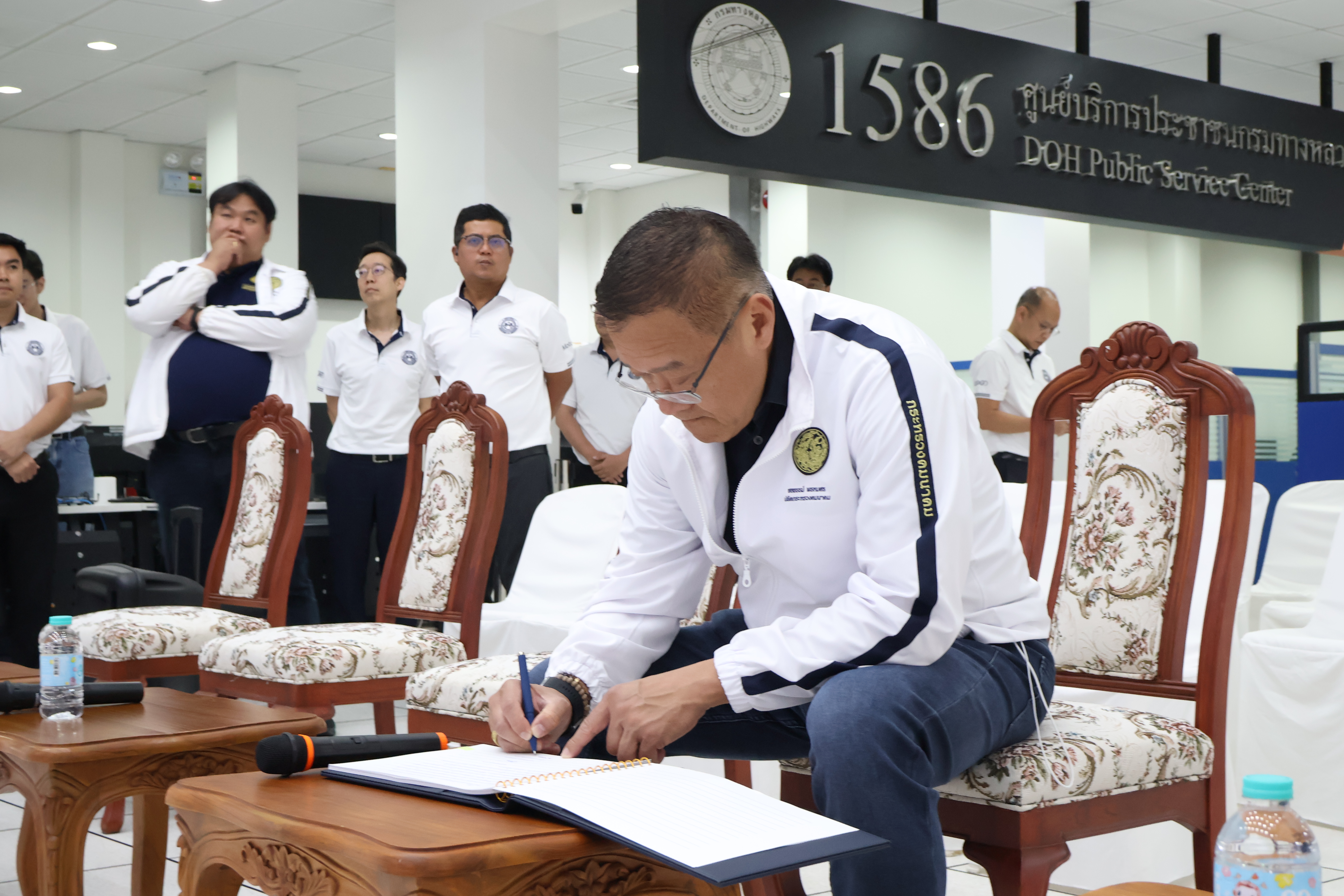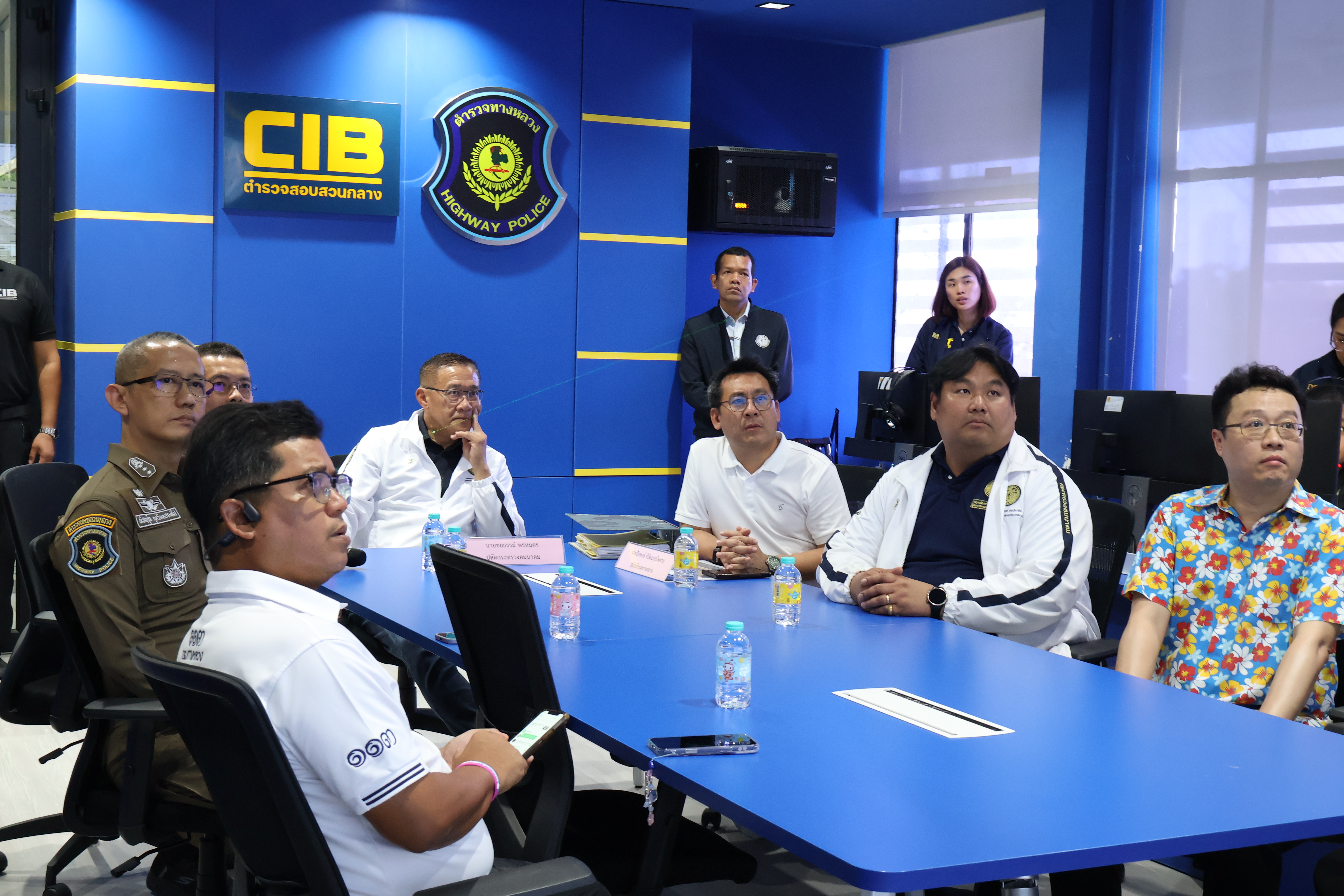 จากนั้น คณะฯ ได้เดินทางไปตรวจเยี่ยมศูนย์ควบคุมสั่งการจราจร กองบังคับการตำรวจทางหลวง โดยบูรณาการการทำงานร่วมกับตำรวจทางหลวงในการดูแลความปลอดภัยตลอด 24 ชั่วโมง ในการนี้ มี พ.ต.อ.พิชญ์รุจ กุลวิมลประทีป รองผู้บังคับการตำรวจทางหลวง ให้การต้อนรับ และ พ.ต.อ.สุขสวัสดิ์ คูสิทธิผล รองผู้บังคับการตำรวจทางหลวง เป็นผู้รายงานภาพรวมการบริหารจัดการจราจร และมาตรการอำนวยความสะดวกแก่ประชาชน