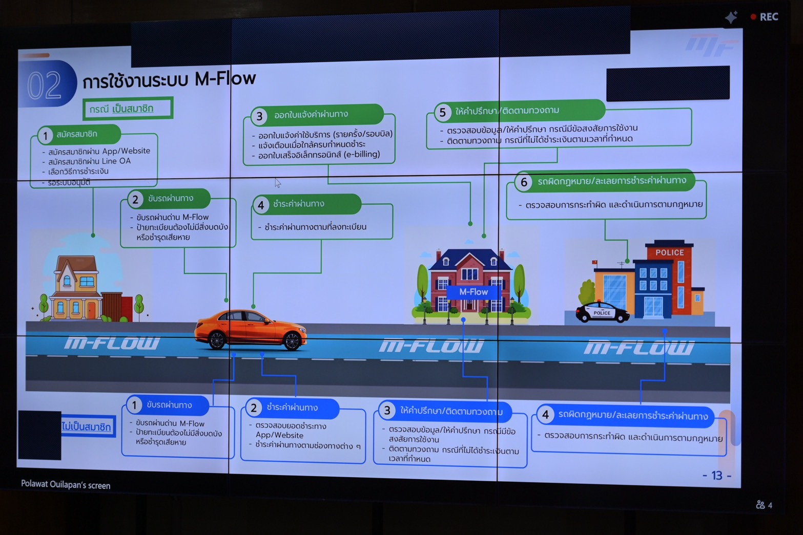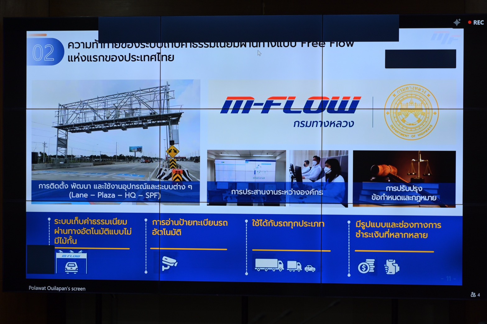 การหารือในครั้งนี้ กรมทางหลวงได้ถ่ายทอดองค์ความรู้และประสบการณ์จากการดำเนินงานระบบ M-Flow ทั้งในด้านกระบวนการทำงานของระบบ การดำเนินการด้านกฎหมาย ตลอดจนแนวทางการบูรณาการข้อมูลระหว่างหน่วยงานที่เกี่ยวข้อง เพื่อประกอบการศึกษาและพัฒนามาตรการจัดเก็บค่าธรรมเนียมการใช้ถนนในเขตพื้นที่จราจรหนาแน่น (Congestion Charge) ในกรุงเทพมหานคร ให้มีประสิทธิภาพ เหมาะสมกับบริบทของพื้นที่ และสอดคล้องกับแนวทางการพัฒนาระบบคมนาคมขนส่งที่เป็นมิตรต่อสิ่งแวดล้อมอย่างยั่งยืนในระยะยาว