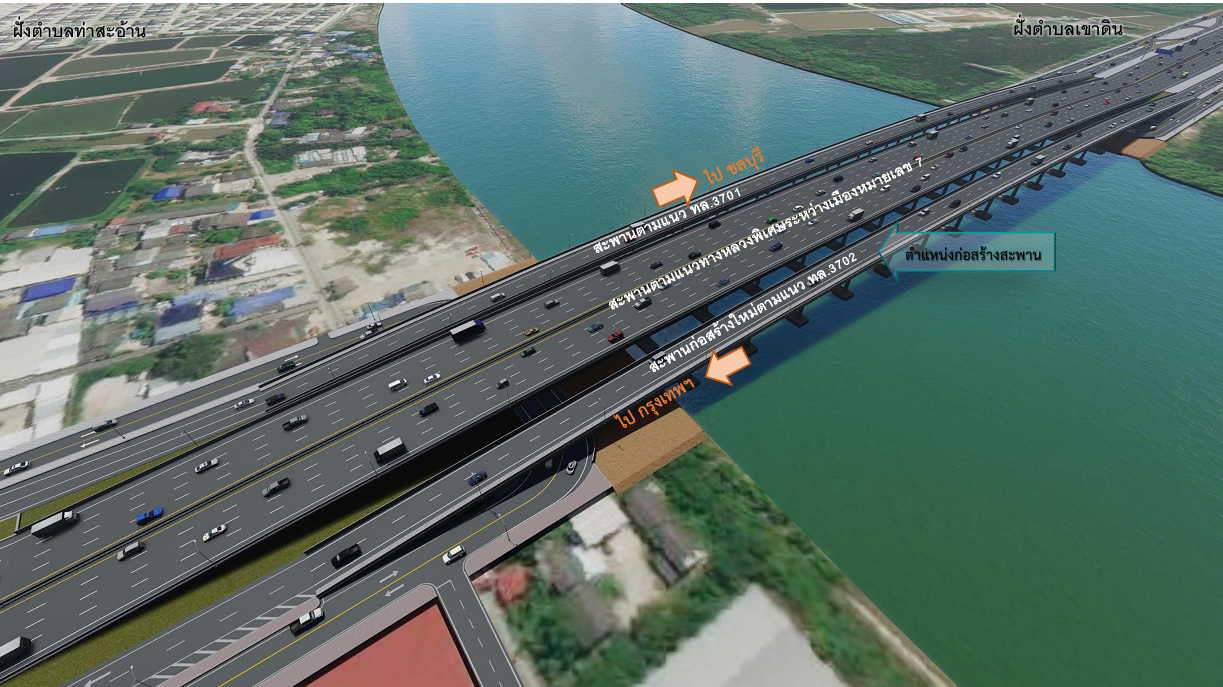 - สะพานใหม่บนทางหลวงหมายเลข 3702 รองรับการจราจรขาเข้าจากจังหวัดชลบุรี มุ่งหน้า กทม.