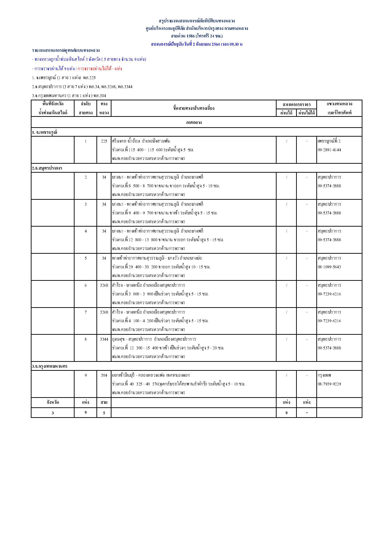 กรมทางหลวงขอรายงานสถานการณ์ น้ำท่วม และดินสไลด์ ในโครงข่ายทางหลวง วันพุธที่ 2 กันยายน 2564 เวลา 09.30 น. ดังนี้