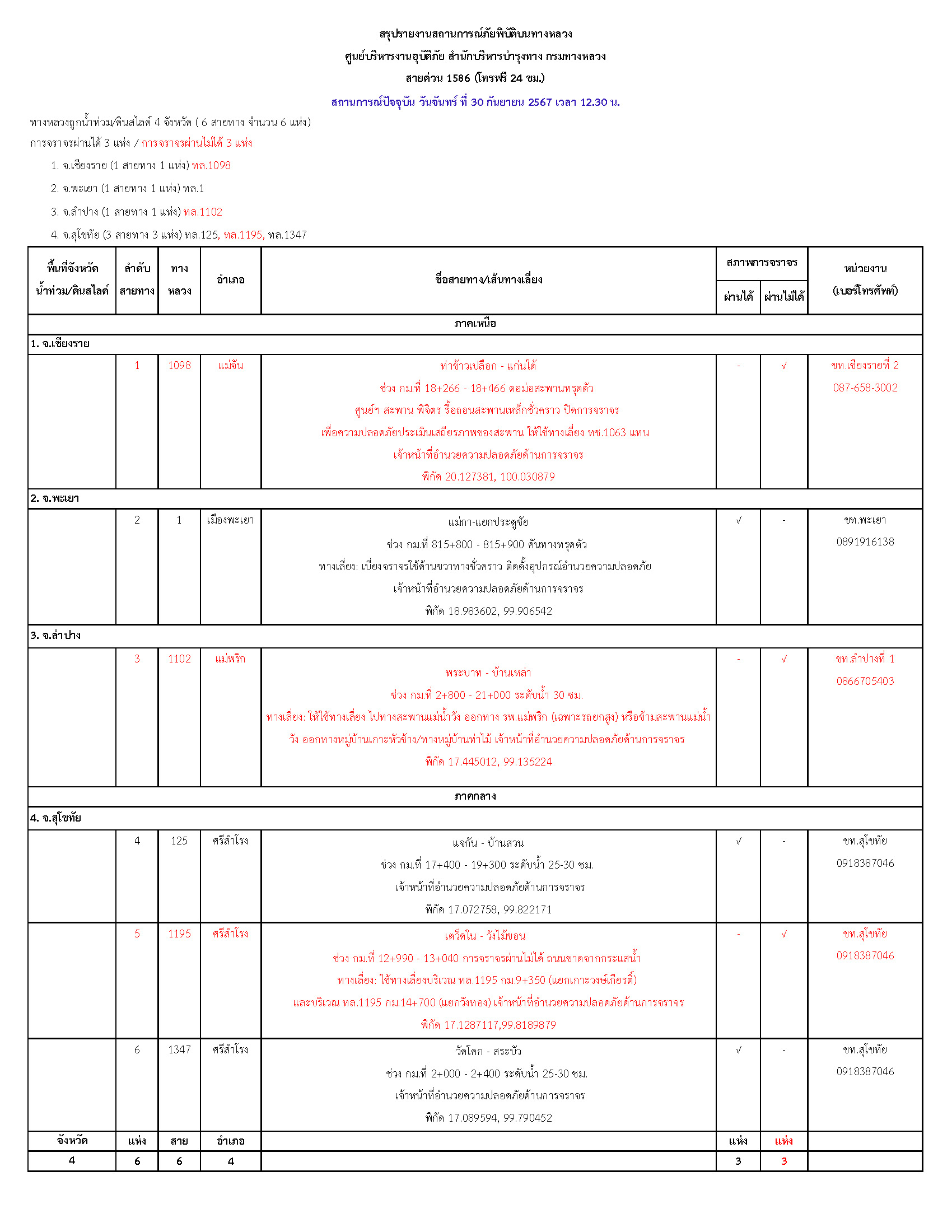 วันจันทร์ที่ 30 กันยายน 2567 เวลา 12.30 น. ดังนี้