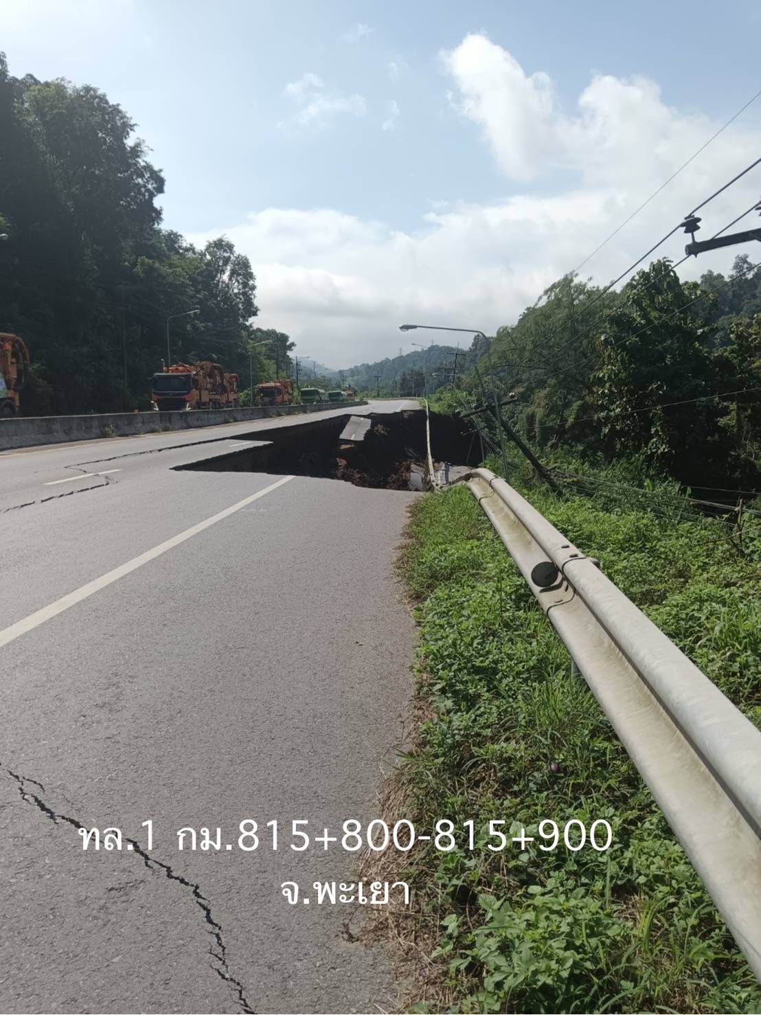* เครื่องจักรเตรียมพร้อมในพื้นที่ อยู่ระหว่างวิศวกรและนักธรณีวิทยาประเมินเสถียรภาพของคันทาง