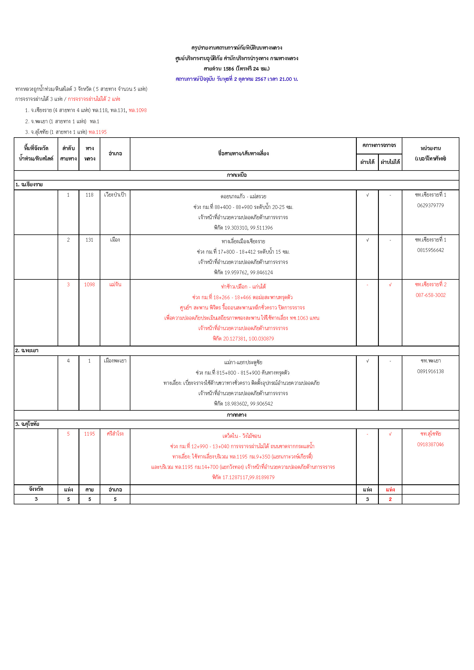 กรมทางหลวงขอรายงานสถานการณ์ น้ำท่วม และดินสไลด์ ในโครงข่ายทางหลวง