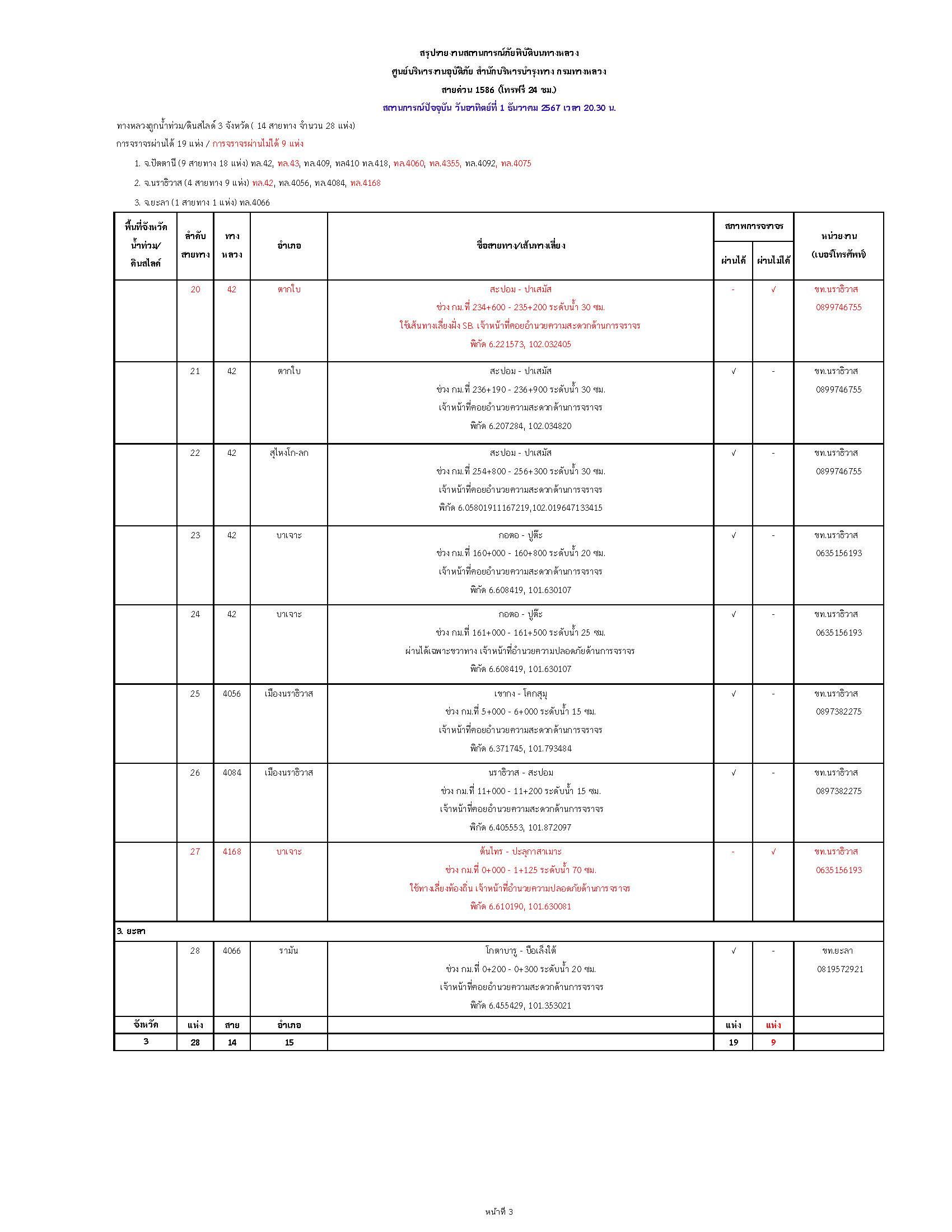 - การจราจรผ่านไม่ได้ 3 แห่ง